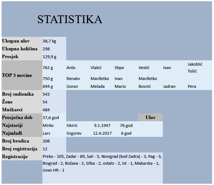Organizator je predvidio i nagradu za najveću lignju, tzv. ‘mrcinu’, koju je s lignjom teškom 762 grama pokupila ekipa u sastavu Ante Vlakić, Stipe Vestić i Ivan Jakoblić Tošić.