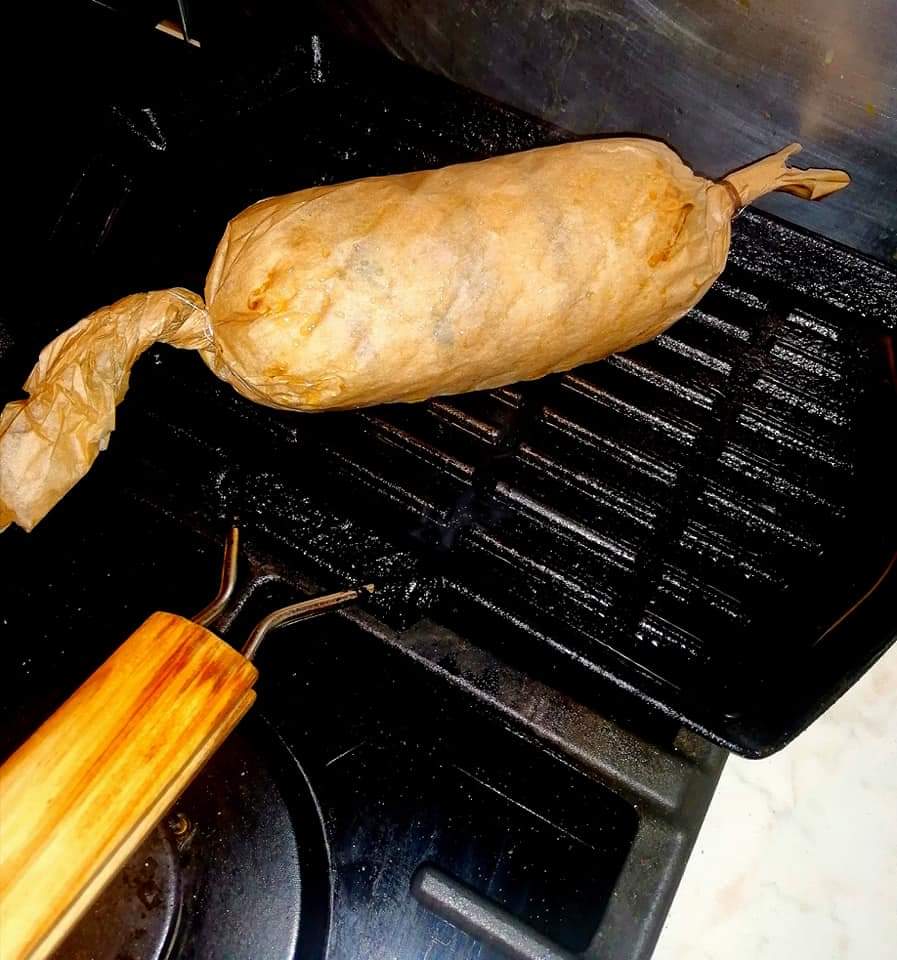 Tako urolan i omotan file se na laganoj vatri na gril tavi peče petnaestak minuta.