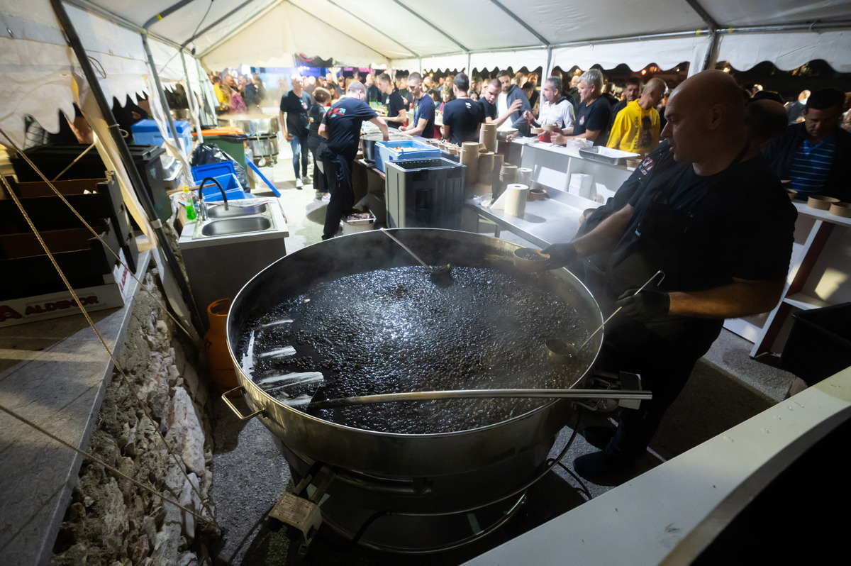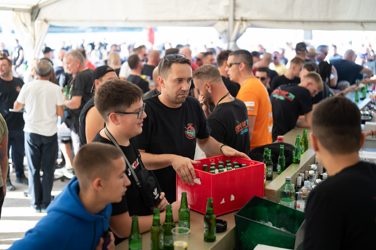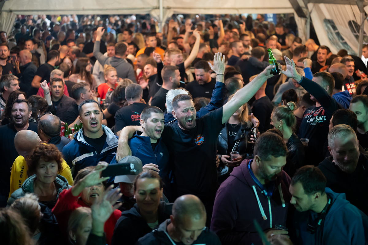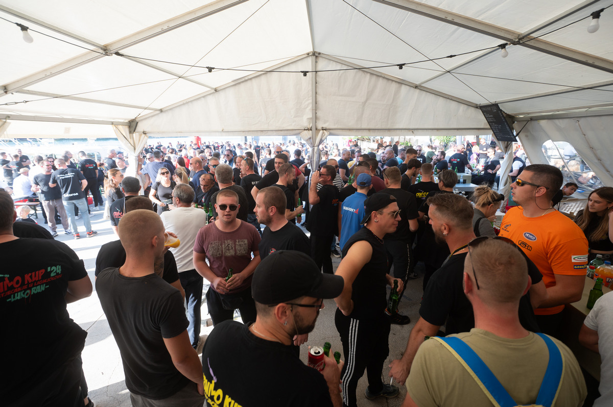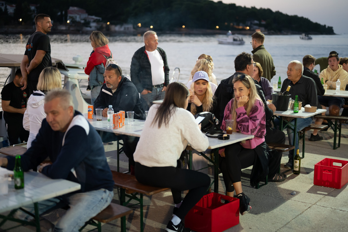 I kako je gužva pod šatorom, ispred šanka i pred kuhinjskim pultovima rasla, kada su na kraju sve brodice pristale i vezale svoje cime, ta je gužva prerasla u nešto što kipi i što se čini kao da bi svaki čas moglo izmaći kontroli.