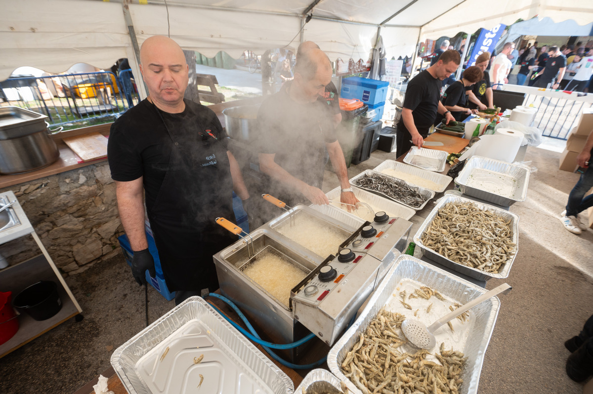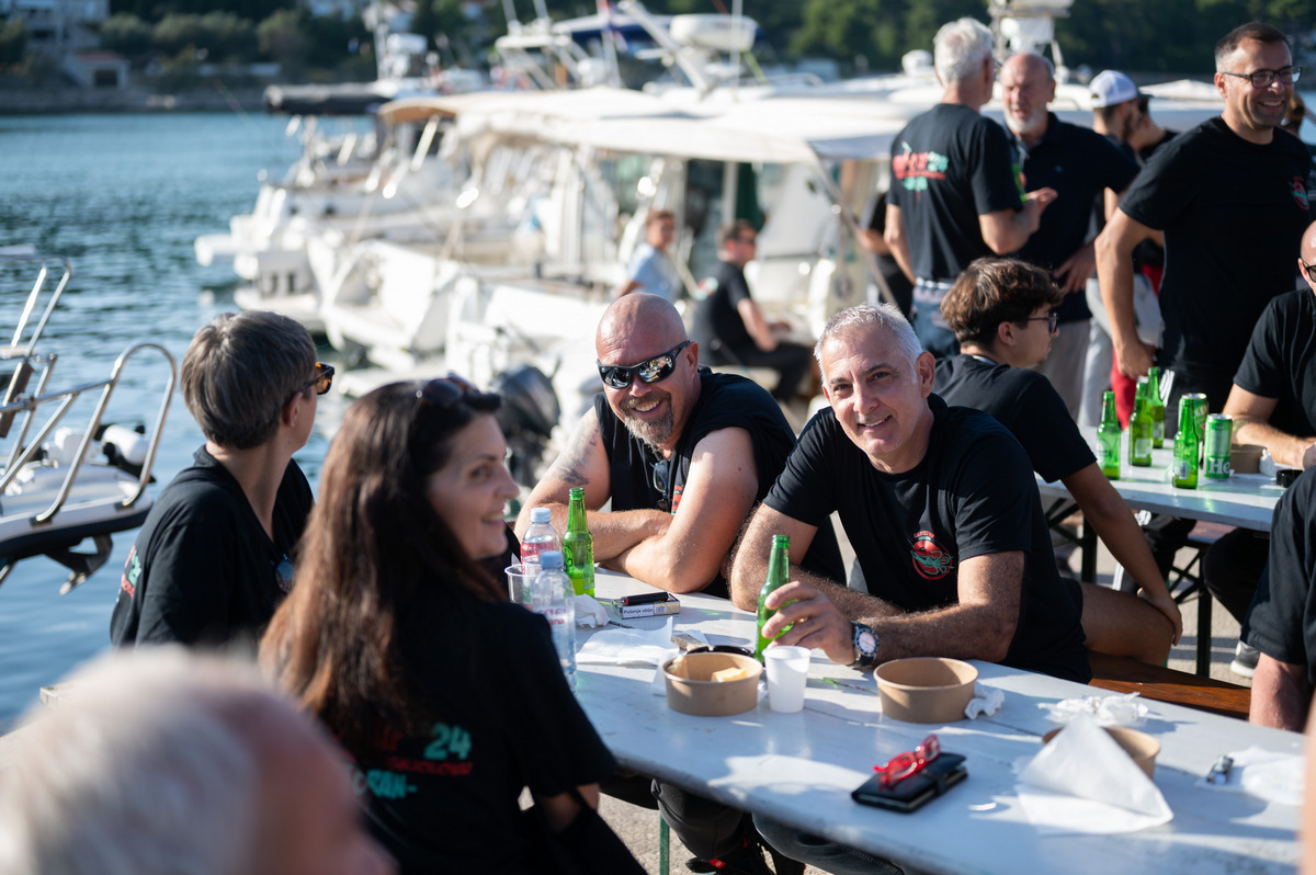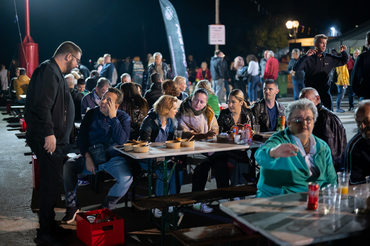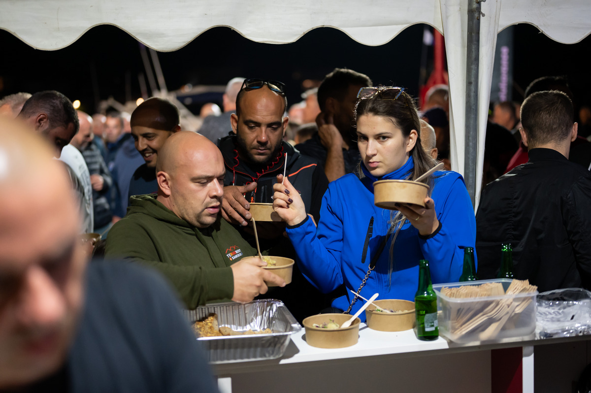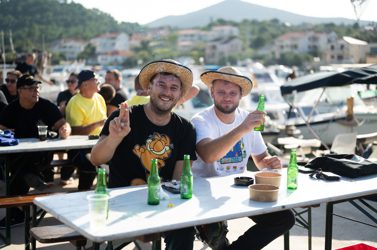 Pune gradele srdela, tunjevine, liganja, ogromne količine sipa s čičvardom, rižota od plodova mora, salate od hobotnice i mušuna, usoljene tune i friganih gavuna, nakon par sati provedenih na moru su više nego prijali i natjecateljima i gostima kojih je bilo sve više i više.