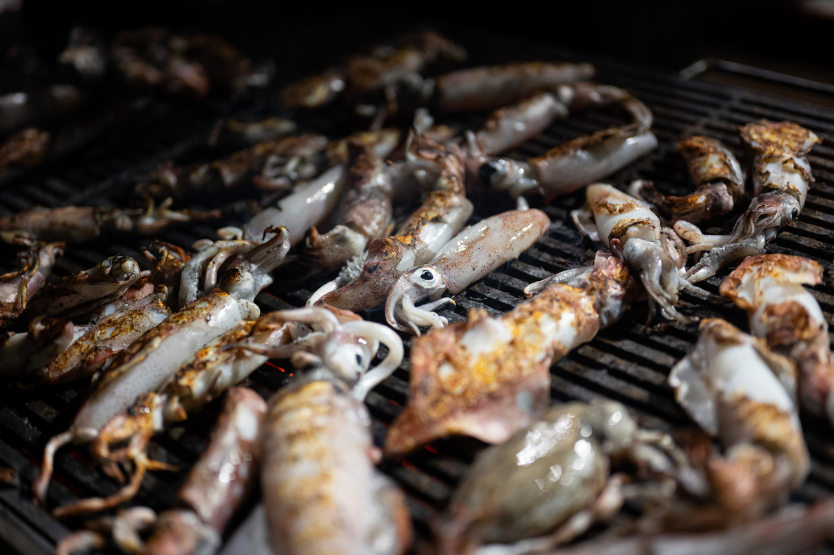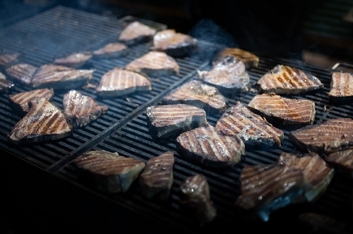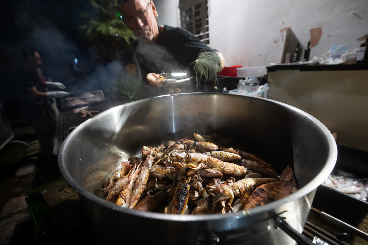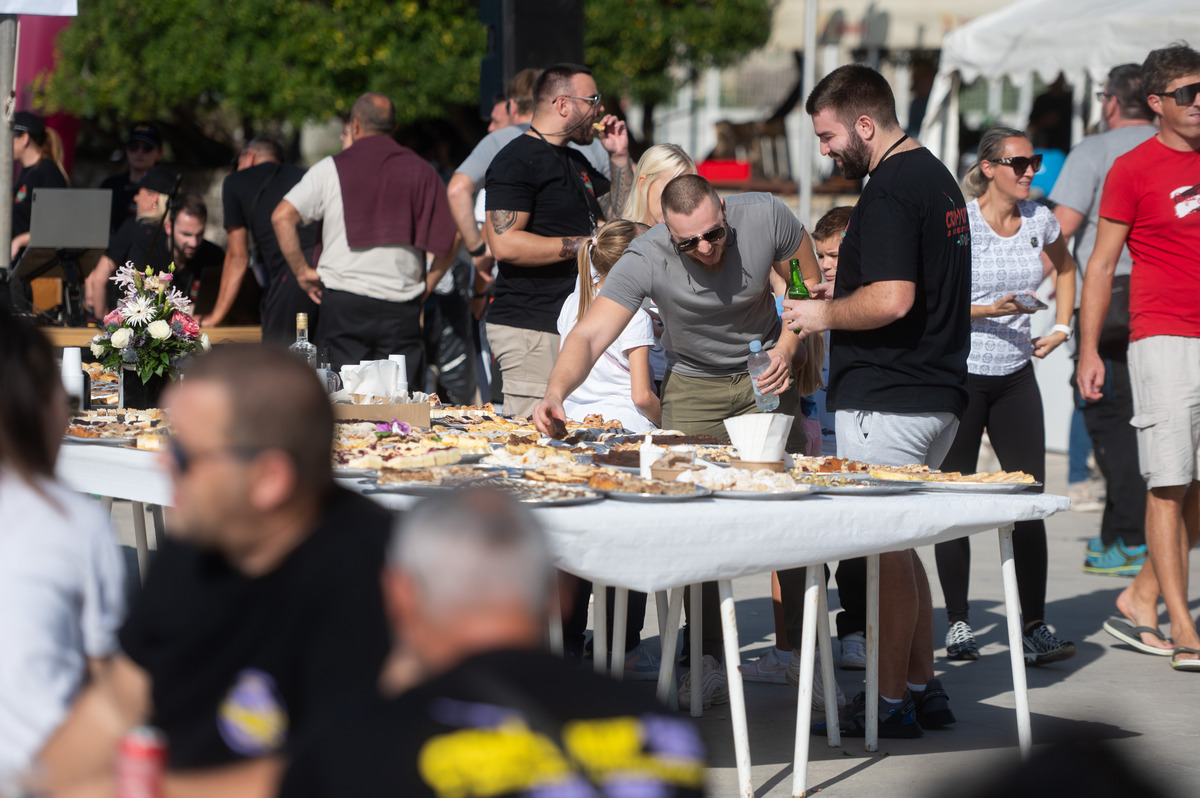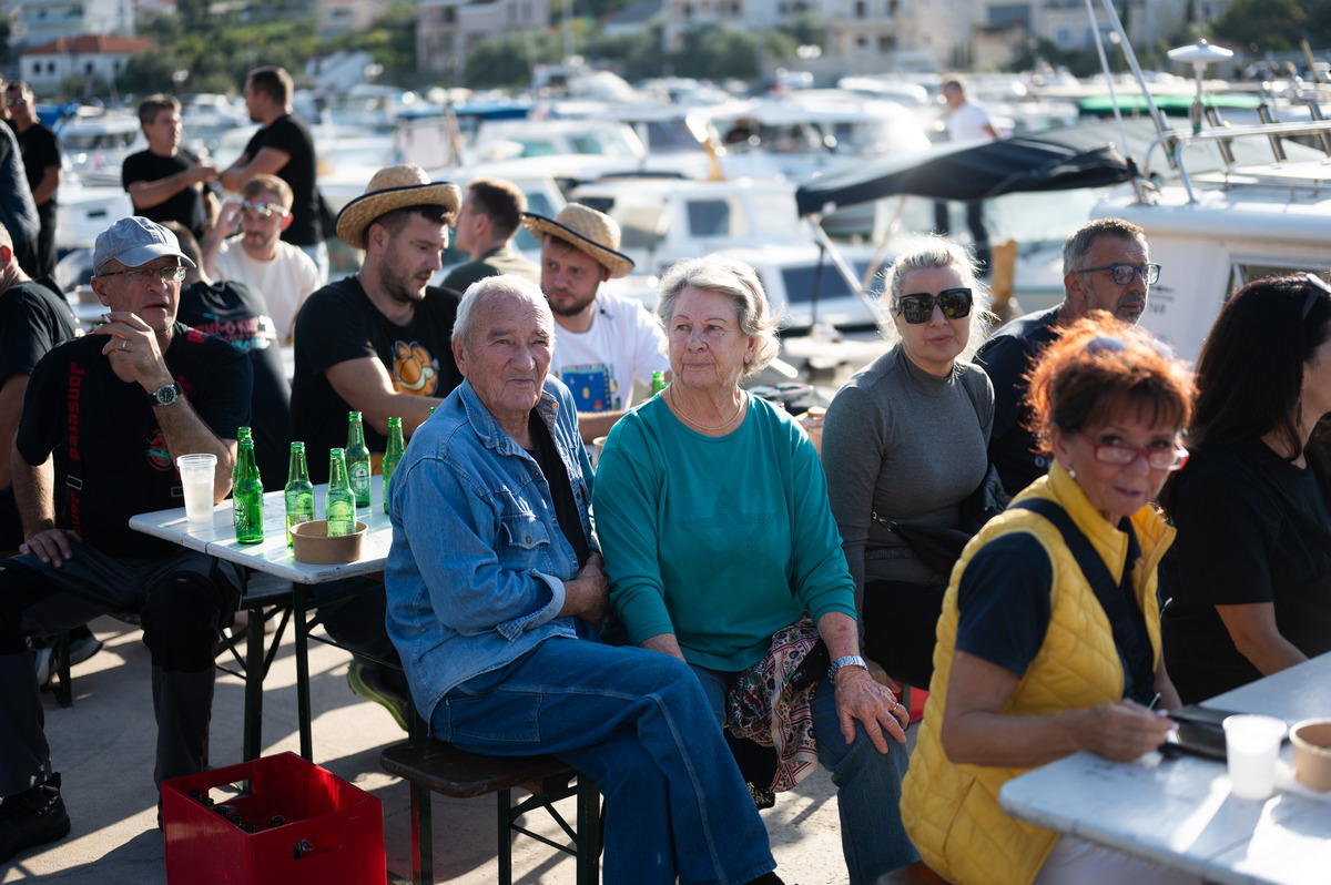 Pune gradele srdela, tunjevine, liganja, ogromne količine sipa s čičvardom, rižota od plodova mora, salate od hobotnice i mušuna, usoljene tune i friganih gavuna, nakon par sati provedenih na moru su više nego prijali i natjecateljima i gostima kojih je bilo sve više i više.