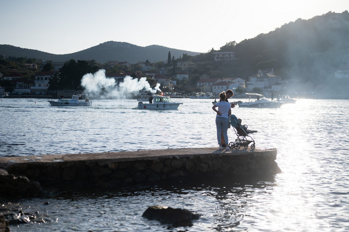 Vala puna brodica, šator ispunjen glazbom, a na rivi stolovi ispunjeni biranim pićima, kolačima, slanim i mariniranim inćunima, delicijama koje su pripremile vrijedne Lukoranke, a našlo se mjesta i za klapu, i lokalne pjevače, ali i za frigane gavune i još gomilu svega što se opisati jednostavno ne može, jer je sve nalikovalo na ogromnu feštu u kojoj piće i hrana, uz neprestanu zabavu, samo bez prekida sniježe i sniježe.