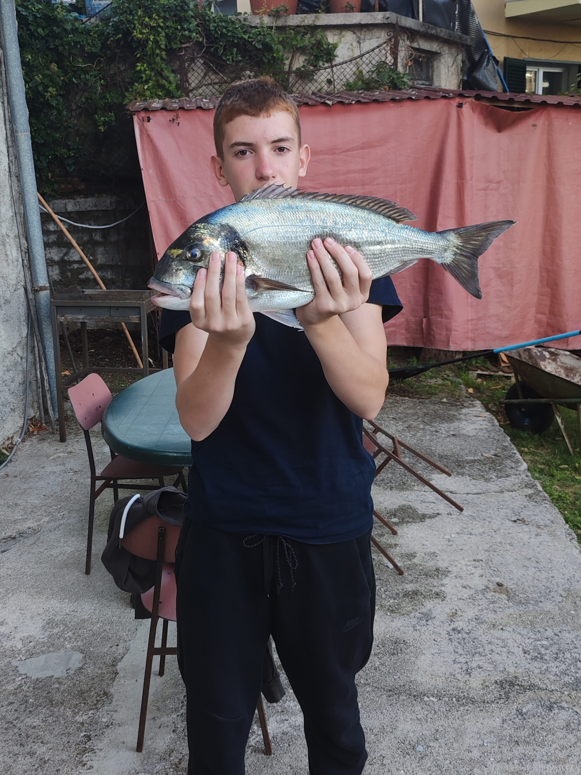 I oko 10 ujutro, odmah po dolasku, u želji da se ulovi nešto ozbiljnije, orada udara na piletinu. Poslije desetak minuta zamaranja završila je u podmetaču.