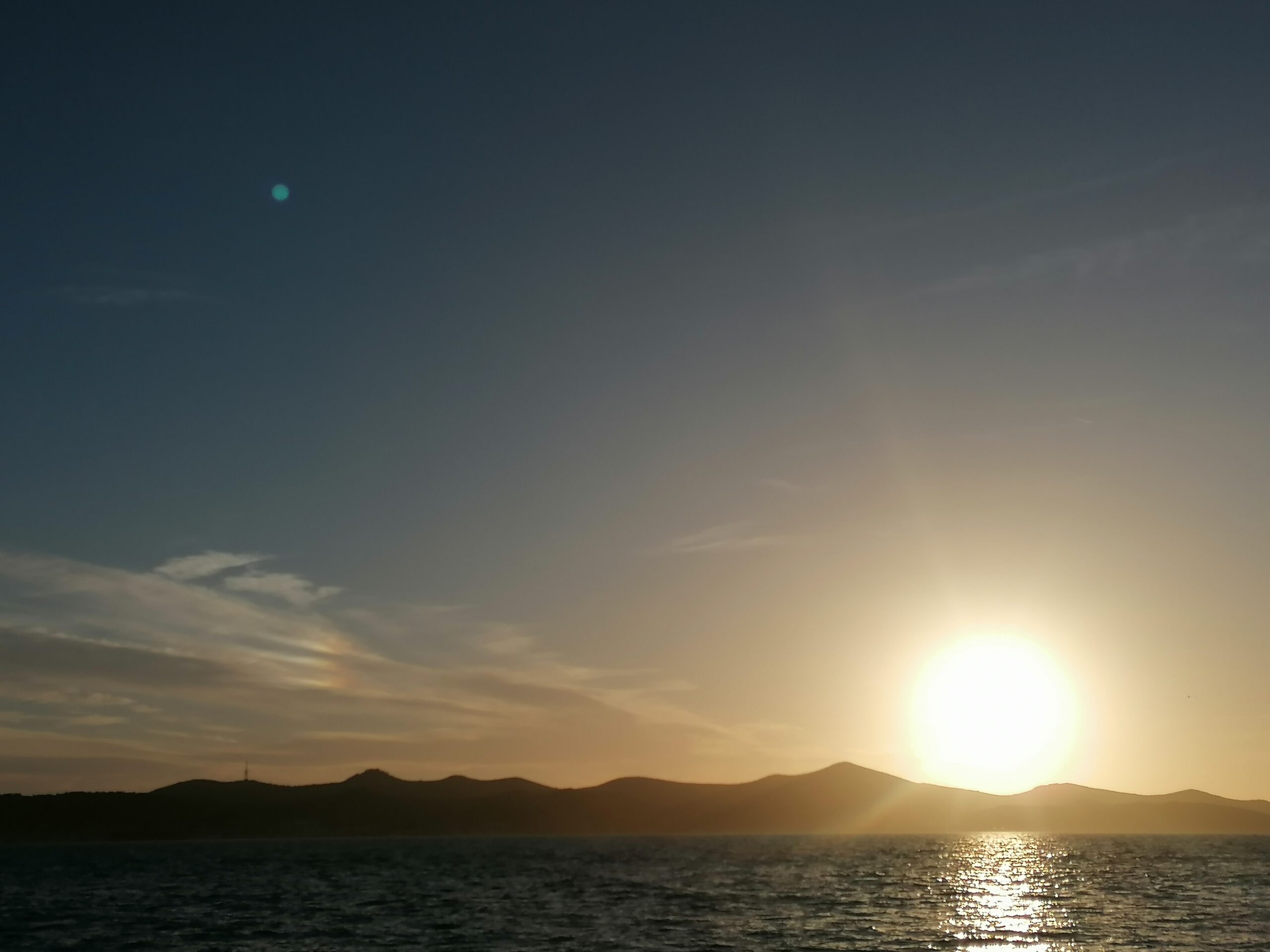 Jasni crveni zalaz sunca na kraju dana, uistinu znači lijep sutrašnji dan. A ukoliko je zalaz izrazito jasan, a sunce sve do potpunog nestajanja vidljivo, tada ribar prognostičar može biti siguran da će lijepo vrijeme potrajati i nekoliko dana.