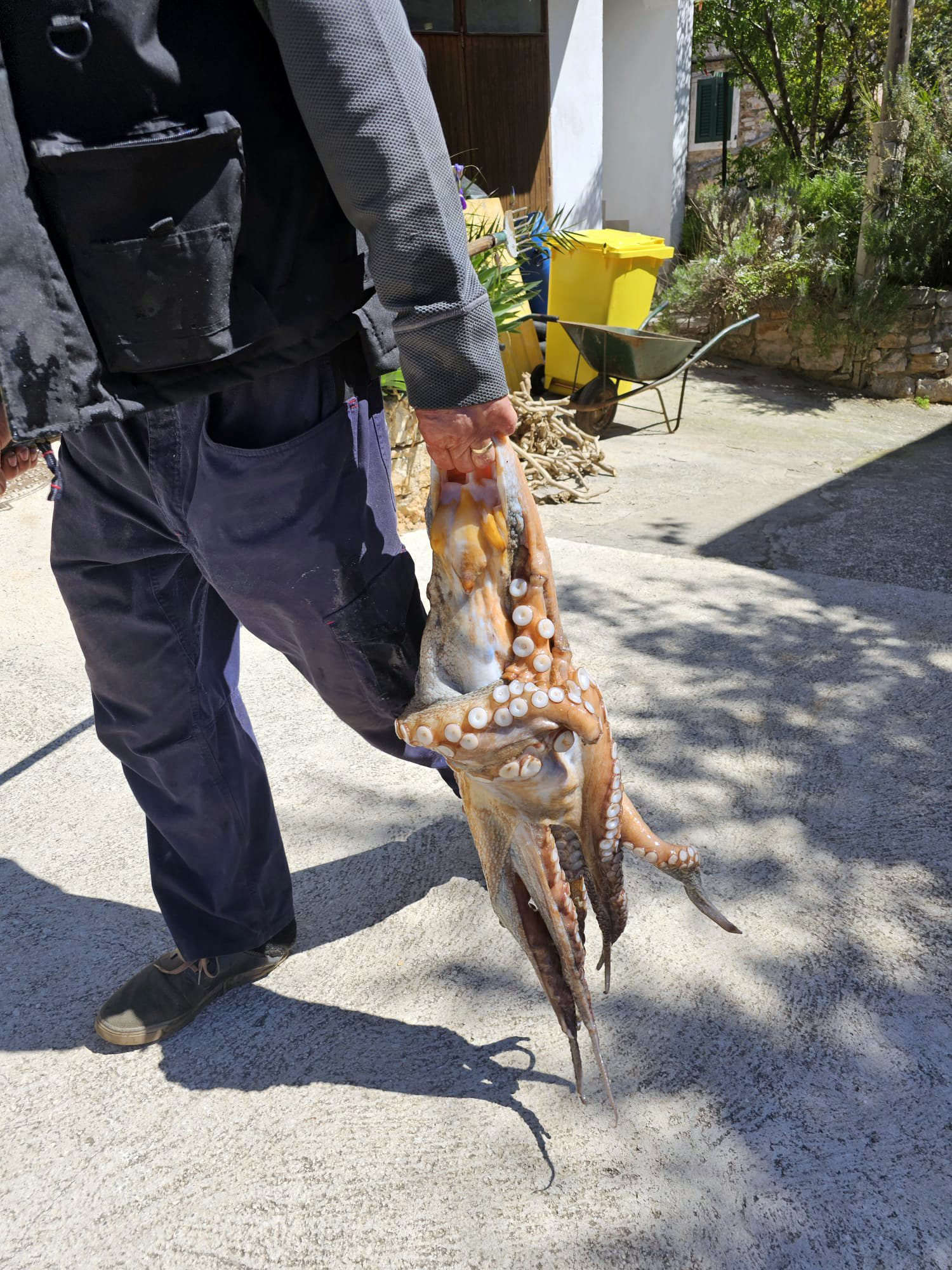 U jednom sam trenu vidio hobotnicu i to na istom mjestu na kojem sam prije par godina ulovio jednu od 9 kila. Teško je bilo procijeniti kolika je ova teška, ali se činila većom od one stare. Požurio sam doma po osti i što sam mogao brže…