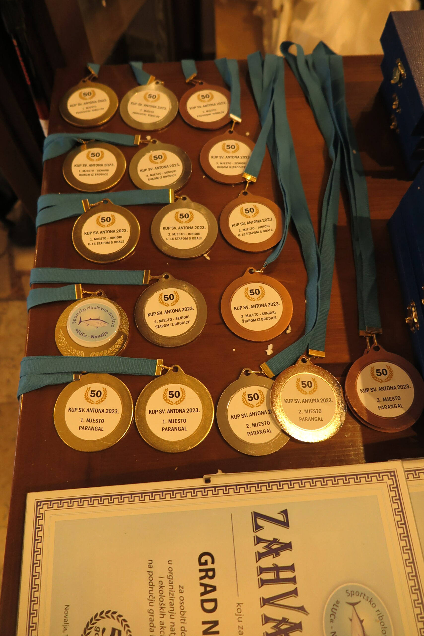 Zahvalnice su podijeljene predstavnicima Grada Novalja, Turističkoj zajednici grada Novalje i Lučkoj upravi Novalja te Hrvatskom savezu za Sportski ribolov na moru, Savezu za sportski ribolov na moru Ličko senjske županije, Ronilačkom klubu ‘Dupin’ te Lovačkom društvu ‘Jarebica’.