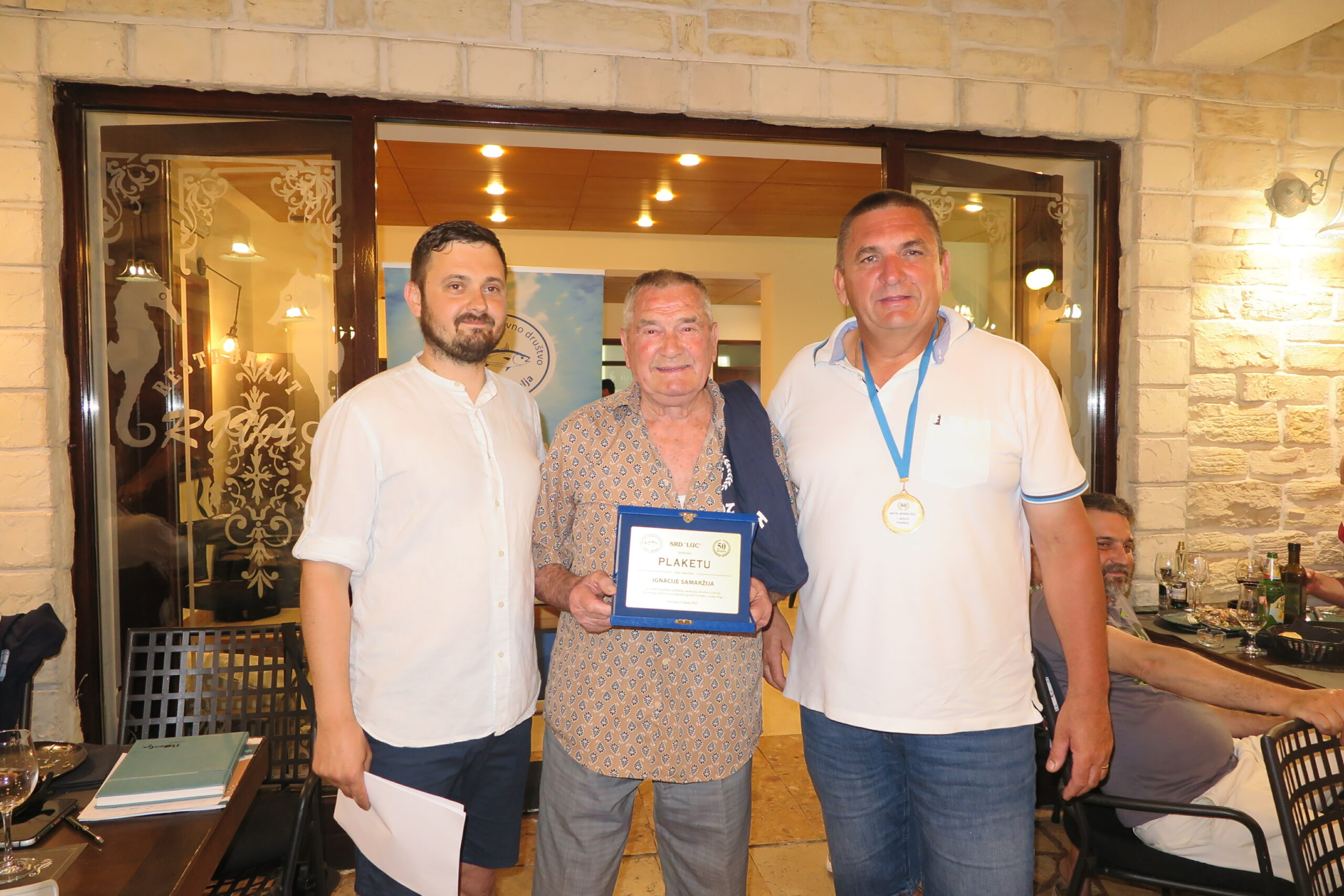 Plaketu za osobiti doprinos u vođenju društva i razvoja sportskog ribolova na području grada Novalje i otoka Paga dobio je bivši predsjednik Ivica Supić te veteran društva Anton Dabo i bivši tajnici Eugen Vidas i Tvrtko Hrgić koji trenutno vodi i školu udičarenja.