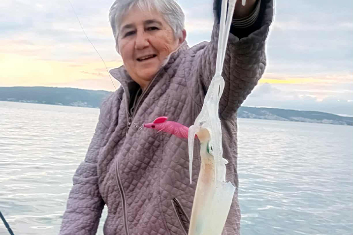 Iz Kaštela nam se javila Tonka Jerčić, ribolovka koja svaki slobodni trenutak provodi loveći ribu, a u ovo doba godine lignje i sipe. Nedavno je izvukla pravu ‘šlapu’ i evo što nam je ispričala o tome: