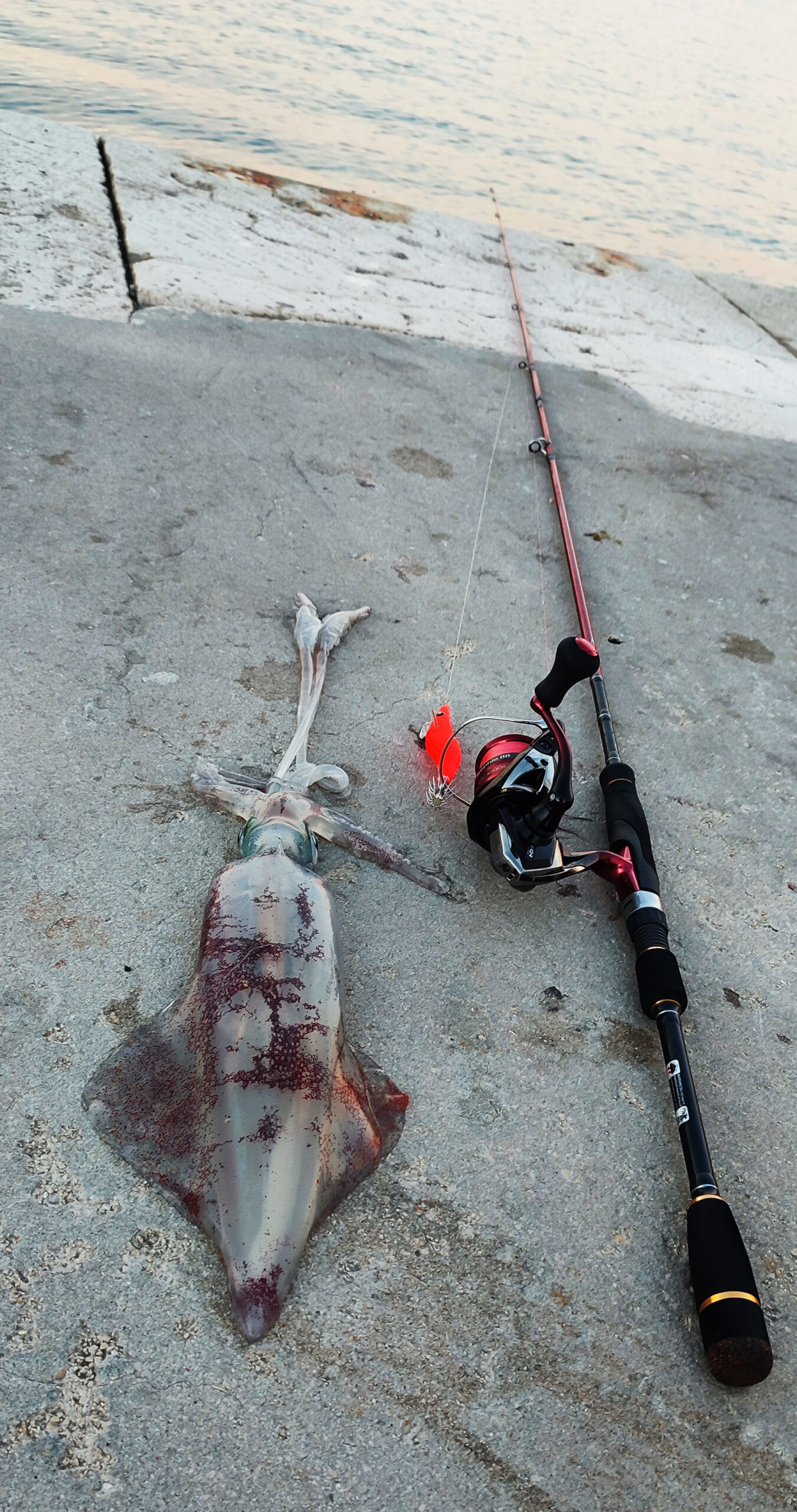 – A toga dana su uvjeti bili idealni. Puhala je lagana južina tako da je more bilo tek lagano namreškano. Daleki izbačaj i polagano privlačenje. U jednom mi se trenu učinilo da sam zapeo za dno, a što se lako dogodi ako je lov monoton pa se tijekom lova privlačenje uspori. No ta je misao bila samo trenutna jer je s druge strane istog trena počelo povlačenje. Rola je zacvrčala tako da sam odmah znao da je na skosavici malo bolji komad. I premda je dobro pumpala, to je nije spasilo. Vrlo brzo je na kraj izašla krasna lignja teška 83 deka – ispričao nam je Antonio Mičić.