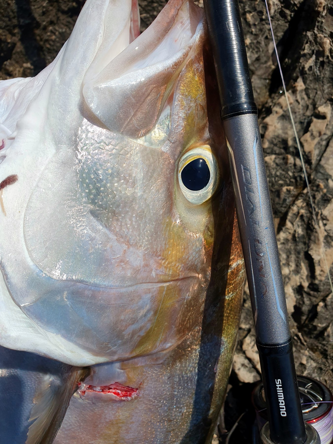 Pogledao je što radim s namjerom da mi nešto kaže, a zatim je okrenuo glavu kako bi se uvjerio da varalica neće zakačiti za stijene i tada je ugledao ribu od 80 centimetara koja je bila upravo pod njegovim nogama.
