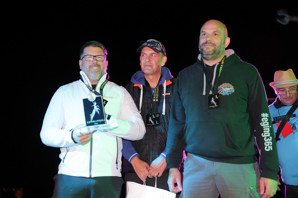 Tako je prvo mjesto s 22 ulovljene lignje ukupne težine 3664 grama osvojila ekipa ‘Eging Zadar’ u sastavu Tomislav Petrić, Dario Matković i Mate Nejašmić, ekipa koja je uspješno obranila titulu prvaka s prošlogodišnje i pretprošlogodišnje ‘Mujsule’.