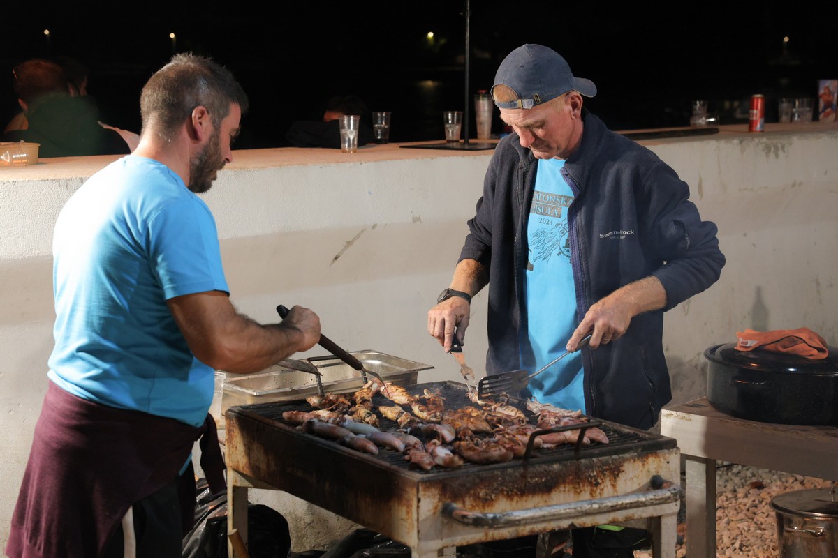 I dok su lignjari pokušavali nasukati što je moguće kvalitetniji ulov, dotle je vrijedni tim kuhara pripremao nizove gradela na kojima se uz klasični mesni meni našle podlanice, tuna i sabljarka koja je oduševila sve koji su je probali dok je srnetina složena na gulaš bila pak posebna priča, što bi rekli, za prste polizati.