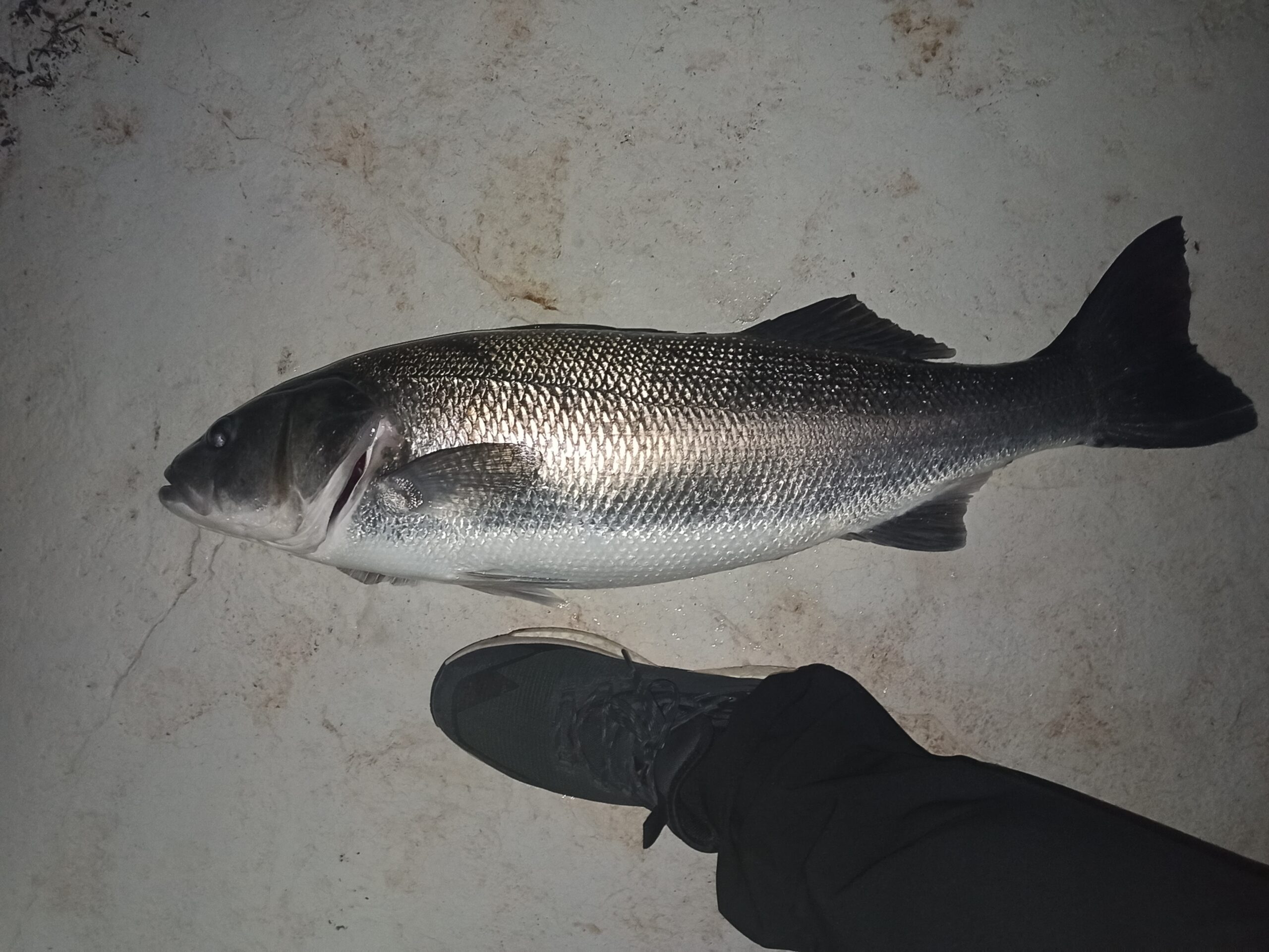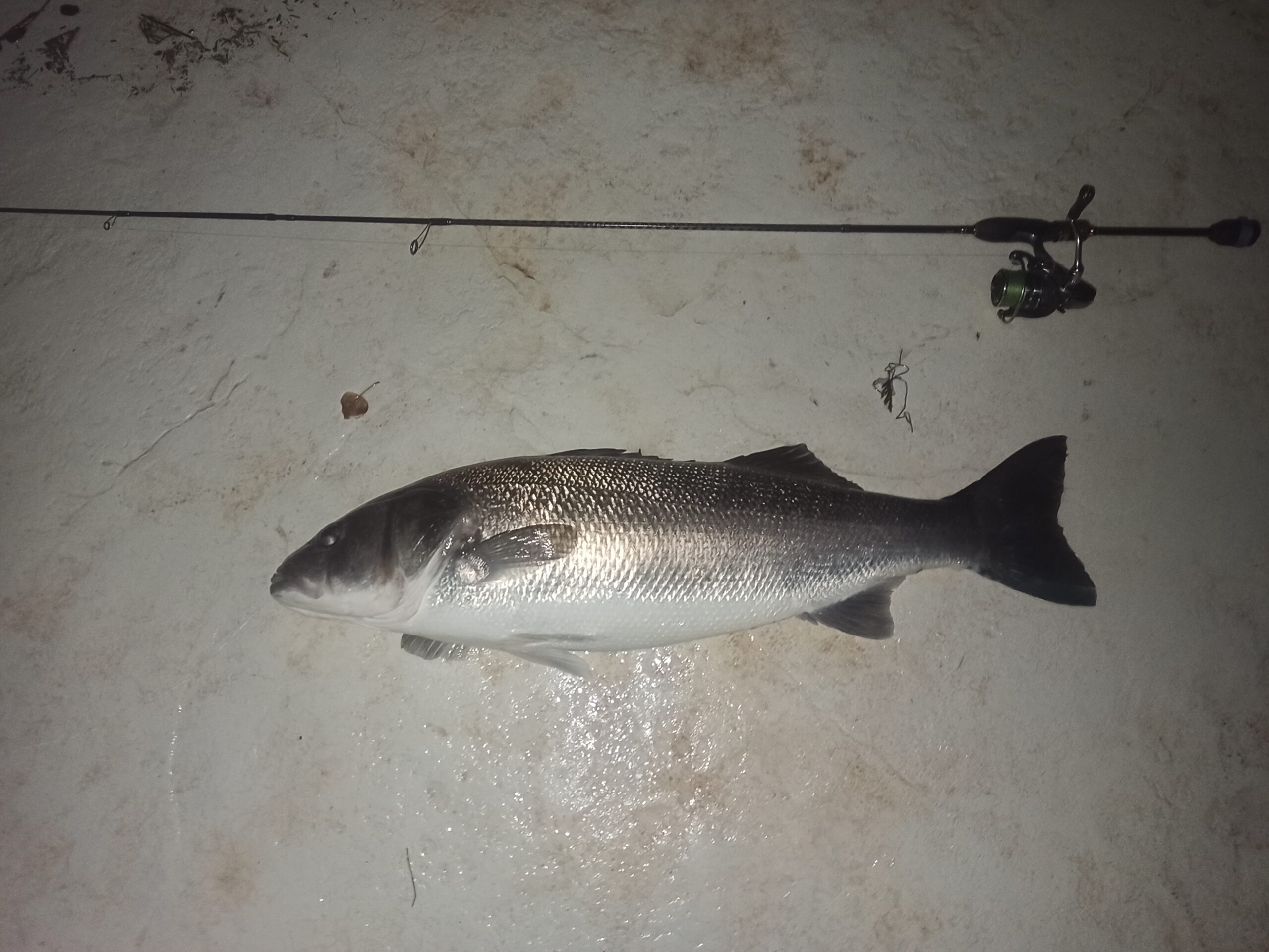 A imao sam sreću i u prihvatu ribe jer je zbog ciklonske plime nivo mora tih dana bio rekordno visok pa je riva s koje sam lovio bila samo dvadesetak centimetara iznad nivoa mora. Tako sam zapravo samo nakon nekih 7 do 8 minuta borbe ribu već izmorenu lako podigao rukom na obalu.