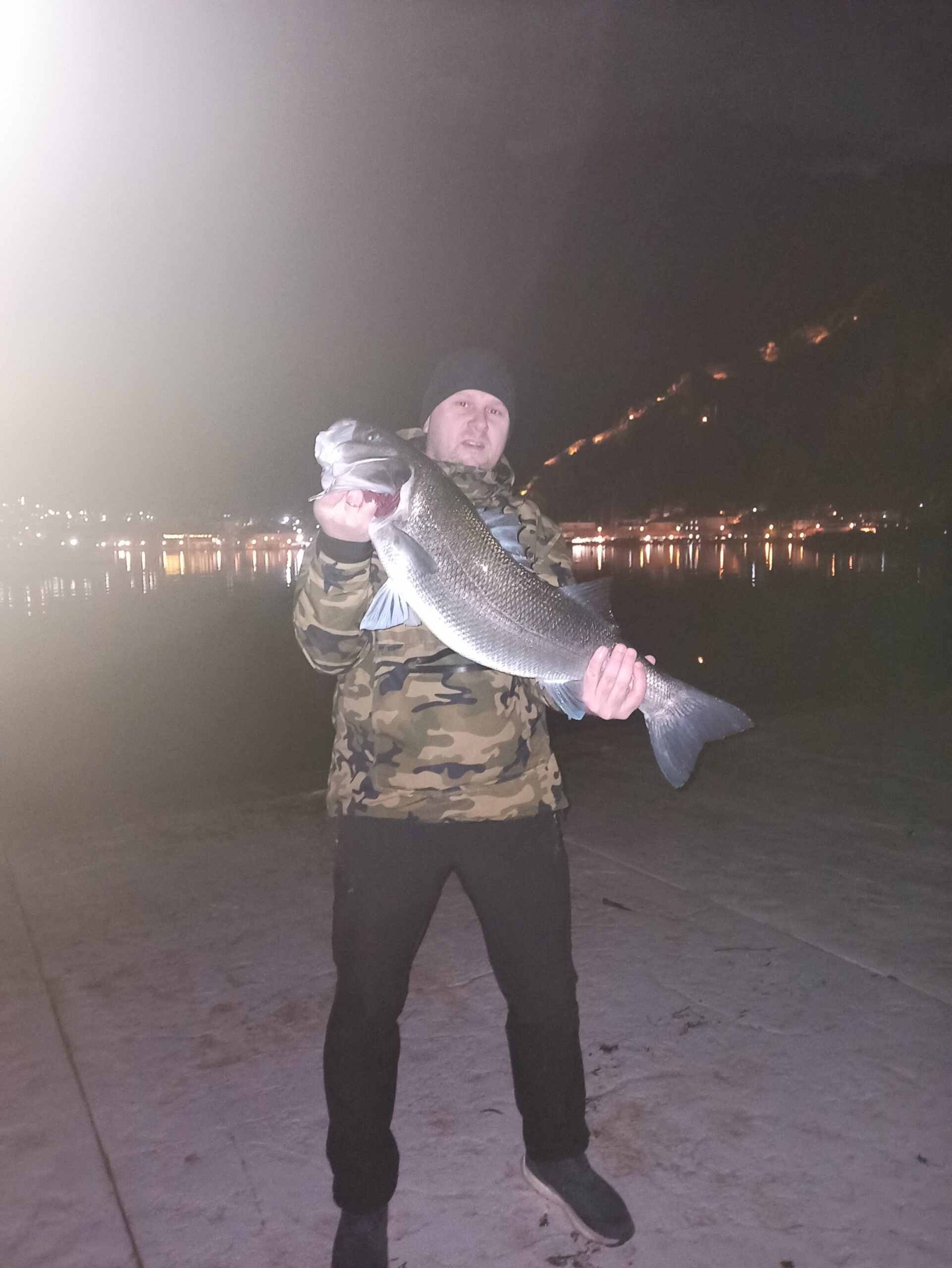 U predvečerje, oko 19:00 sati uspio sam u 3 metra mora, na udaljenosti od oko desetak metara od kraja, nasukati ovog brancina teškog 7,2 kilograma.