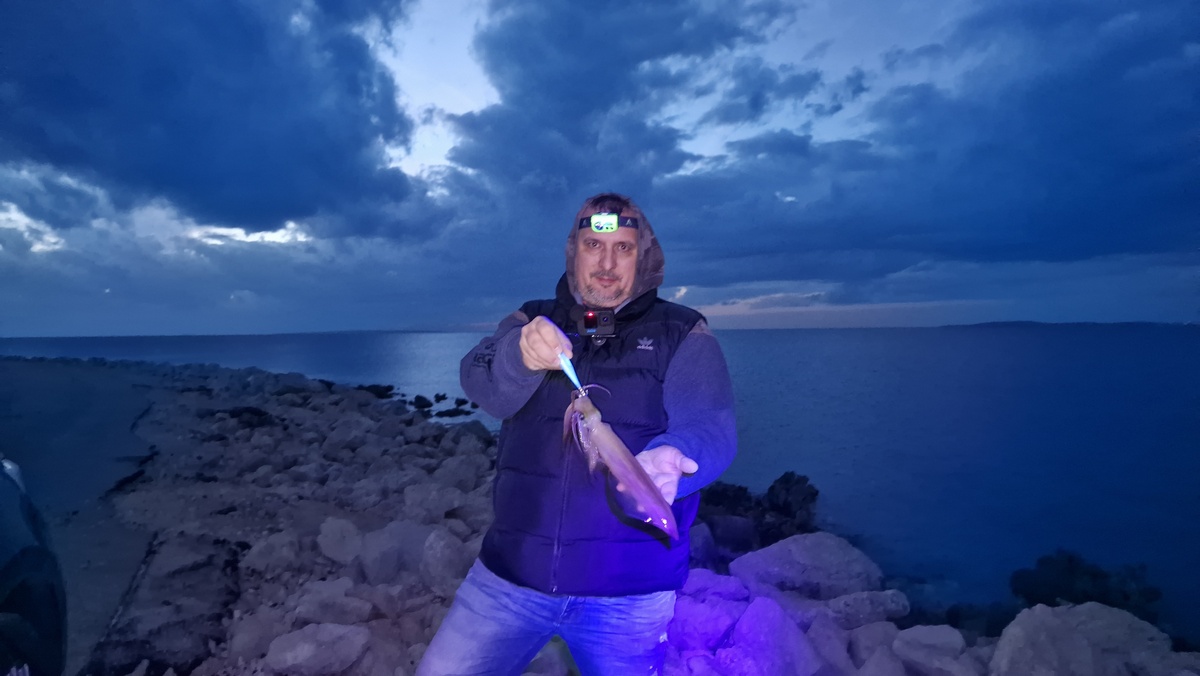 Već pri dolasku osjetili smo da su se uvjeti konačno posložili – naglo zahlađenje, idealna mjesečina i mirnije more davali su naslutiti dobar ribolov. Nedugo nakon prvog izbačaja javlja mi se lignja daleko vani…