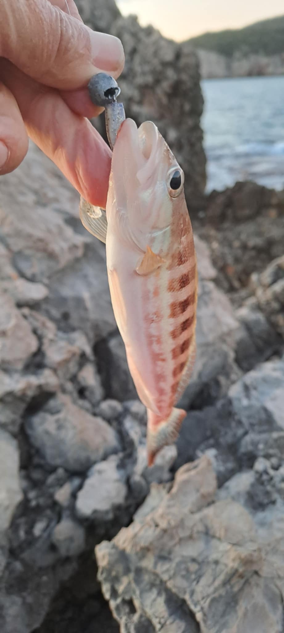 Boje je narančasto-crvenkaste, sa sedam do deset okomitih tamnije smećkastih pruga. Duž tijela, ispod bočne linije od usta do repa, protežu se tri živonarančaste ili žućkaste prugice nepravilnih rubova.