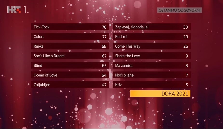 Druga je bila Nina Kraljić s pjesmom "Rijeka", a treća Mia Negovetić s pjesmom "She's Like a Dream ".