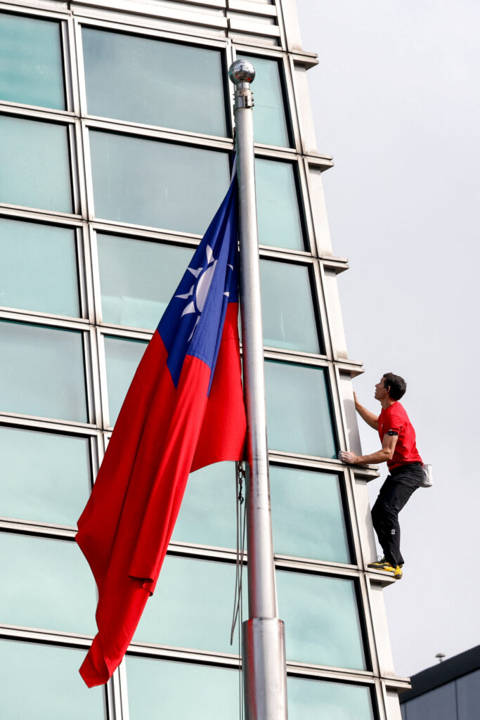 „Kakav prekrasan način da se vidi Taipei“, rekao je novinarima nakon svog pothvata, koji je odgođen za jedan dan zbog vlažnog vremena.