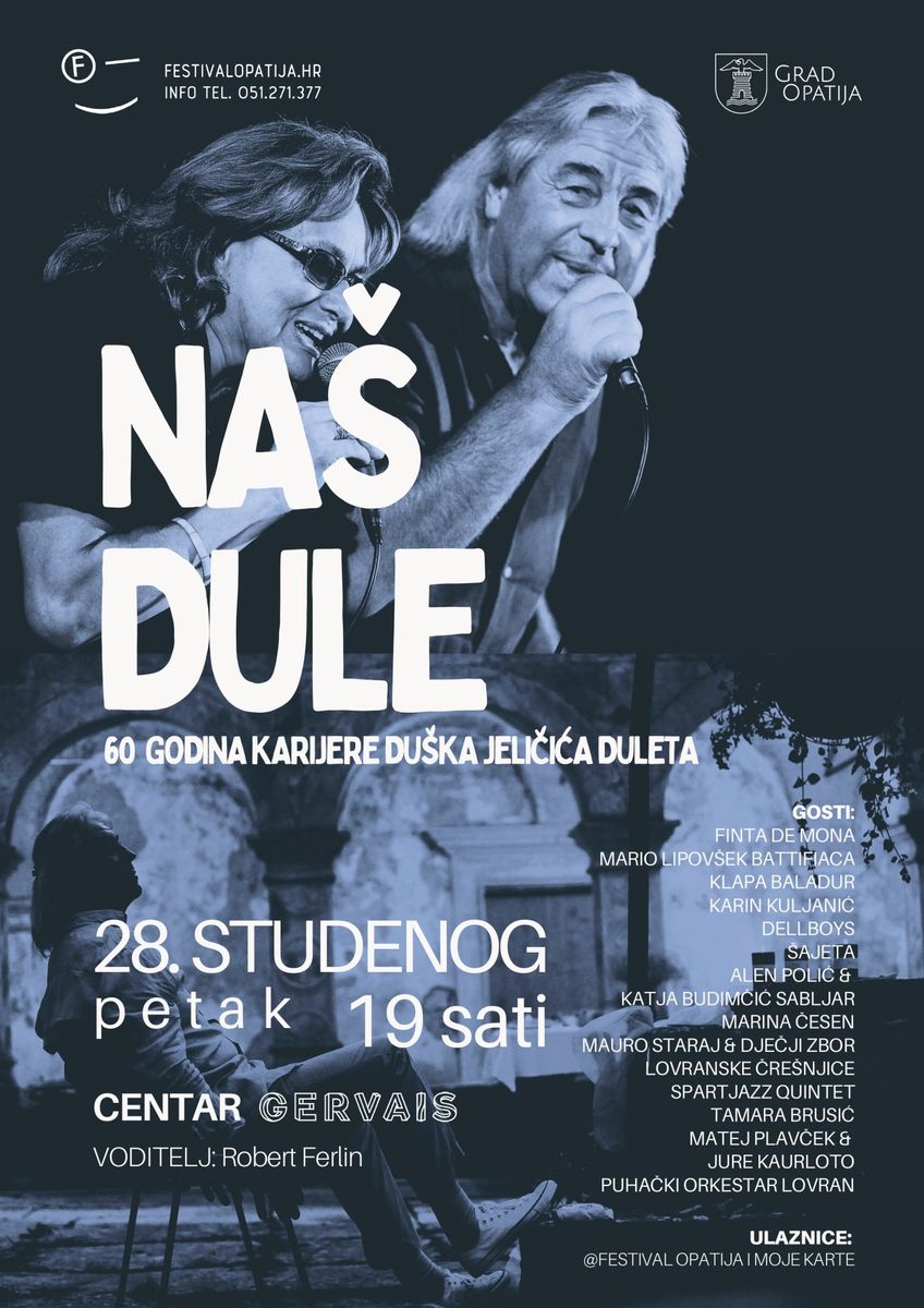 Tom prigodom, Grad Opatija i Festival Opatija pripremaju jedinstvenu večer “Naš Dule” kojom će čestitati obljetnicu ali i Duletu vratiti barem malo onoga što je za Opatiju učinio.