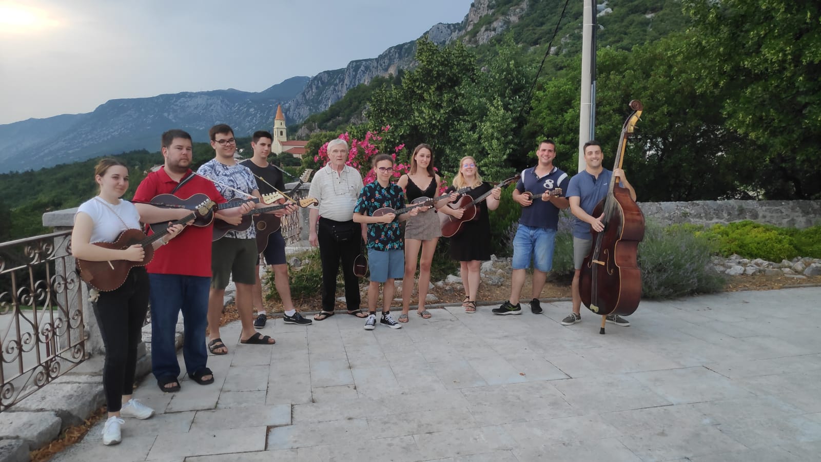 Mi smo na terasi restorana Morčić na Gornjem Zametu videom uhvatili nastup Tamburaškog orkestra KUD-a Zametski koren, uz glazbene goste Neviu Rigutto i Francesca Squarciju.