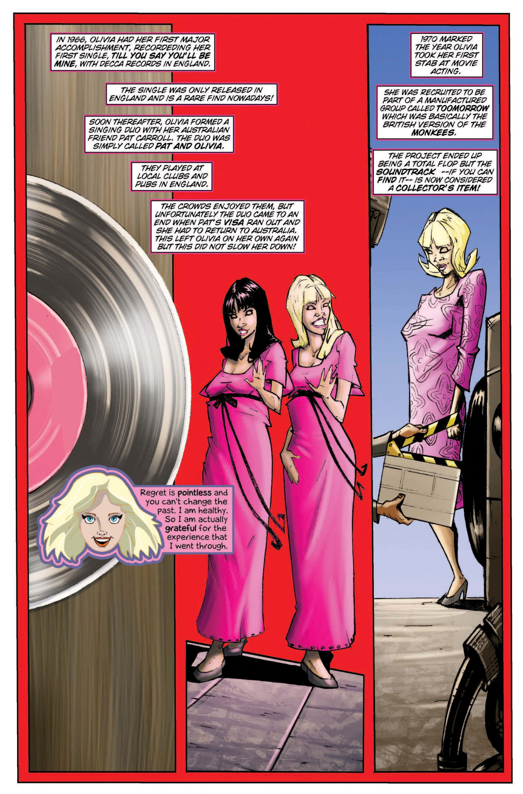 Izdavač stripa o Oliviji Newton-Joh, Darren Davis, rekao je da mu je bila čast raditi s glumicom na tom stripu prije njezine smrti i tako imati priliku dobiti uvid u “njezino gledište i ekskluzivne informacije koje su korištene u ovom izdanju”.