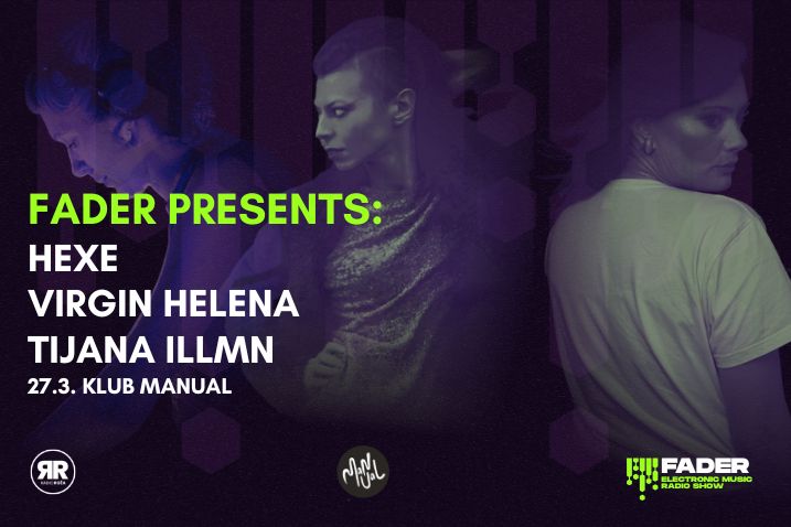Na sceni elektroničke glazbe kojom još uvijek dominantno vladaju muškarci, autori nagrađivane emisije Fader s riječke Radio Roža ovog petka, 27. ožujka, u klub Manual dovodi čak tri vrhunske DJ-ice, strastvene ljubiteljice underground glazbe koja svaka na svoj način obilježava eter ispunjen elektroničkom glazbom.