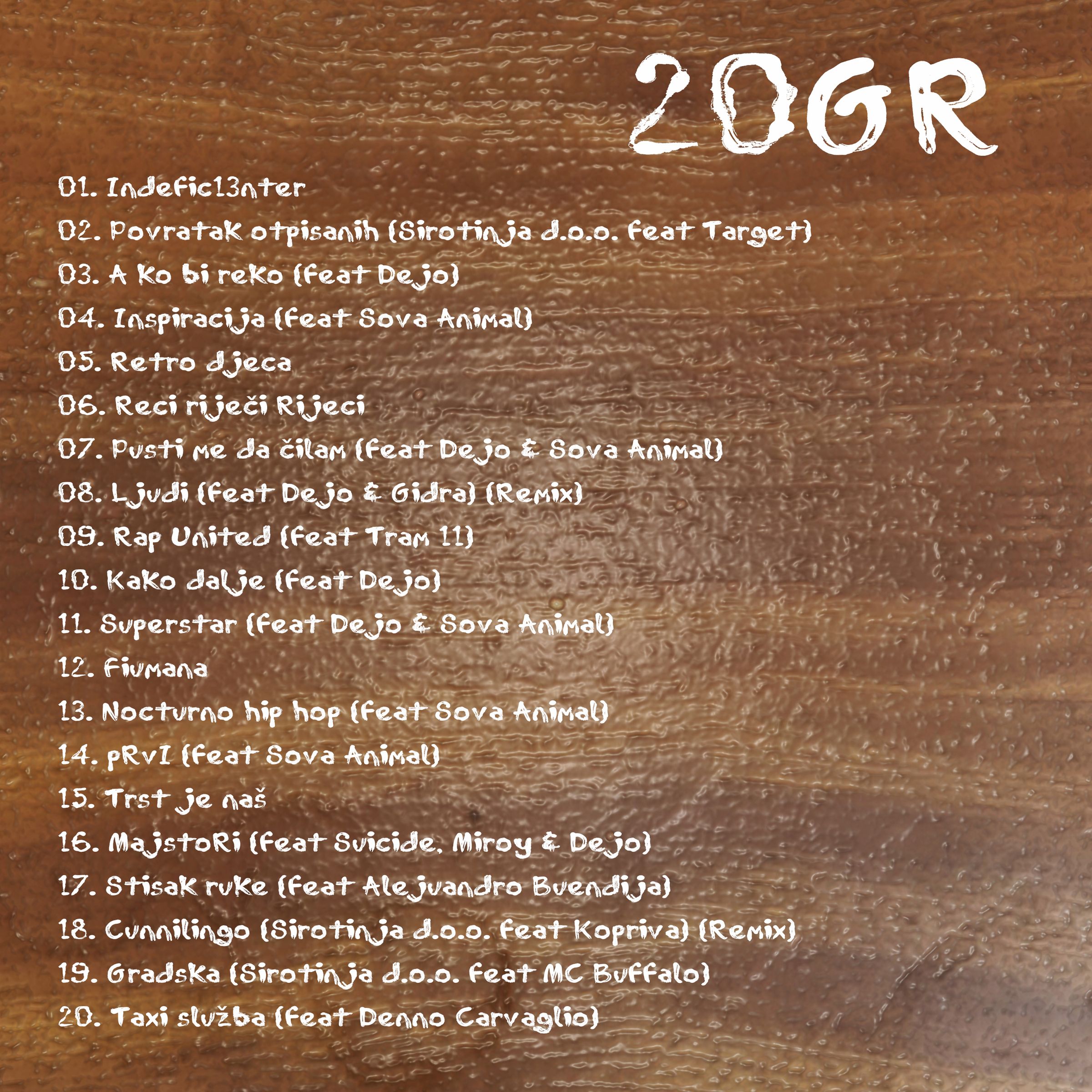 A da bi dostojno obilježio jedan takav značajni vremenski slijed, kao i pionirski rad unutar hrvatskog prostora – Gane je k tome rođen na dan sv. Ante Padovanskog tako da bismo nakon “Trst je naš” mogli dočekati i pjesmu “Padova u ruke nam pada” – odlučio je vjernu ekipu počastiti s mixtapeom “20GR” na kojem je odabrao njemu najdraže stvari s materijala na kojima je sudjelovao tijekom svih ovih godina.