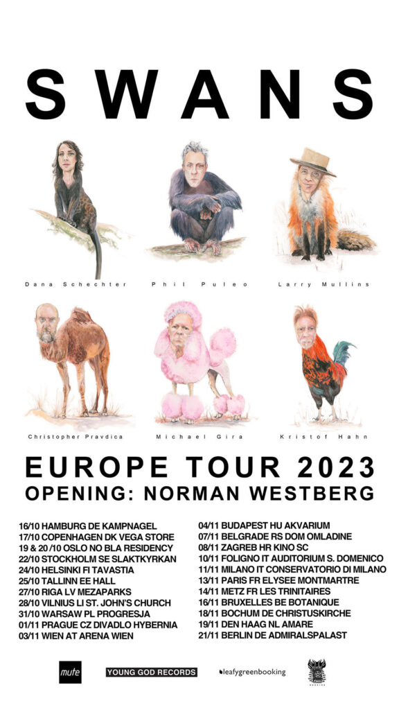 Prije Swansa koji trenutno nastupaju u sastavu Michael Gira, Kristof Hahn, Christopher Pravdica, Phil Puleo, Larry Mullins i Dana Schechter, nastupit će Norman Westberg, i sam dugogodišnji gitarist Swansa. Ulaznice se mogu kupiti preko sustava CoreEvent.