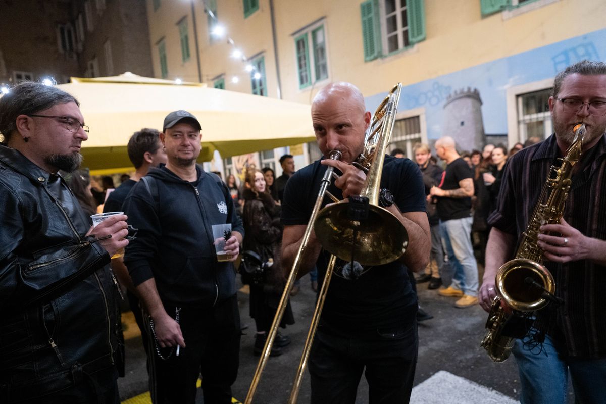 Kako se ulazak u Palach pretvorio u mini-paradu, tako se i energija koja se stvorila nastavila prelijevati kroz cijeli koncert. Bend koji već 15 godina uveseljava prolaznike i daje neku zvučnu ljepotu ulicama našeg kraja, u subotu je nastupio u postavi: Radoslav Tičić (gitara), Elvis Devčić (bas), Vanja Kauzlarić (bubanj), Jasmin Okanović (truba), Petar Tepšić (trombon) i Vedran Mijić (tenor saksofon).