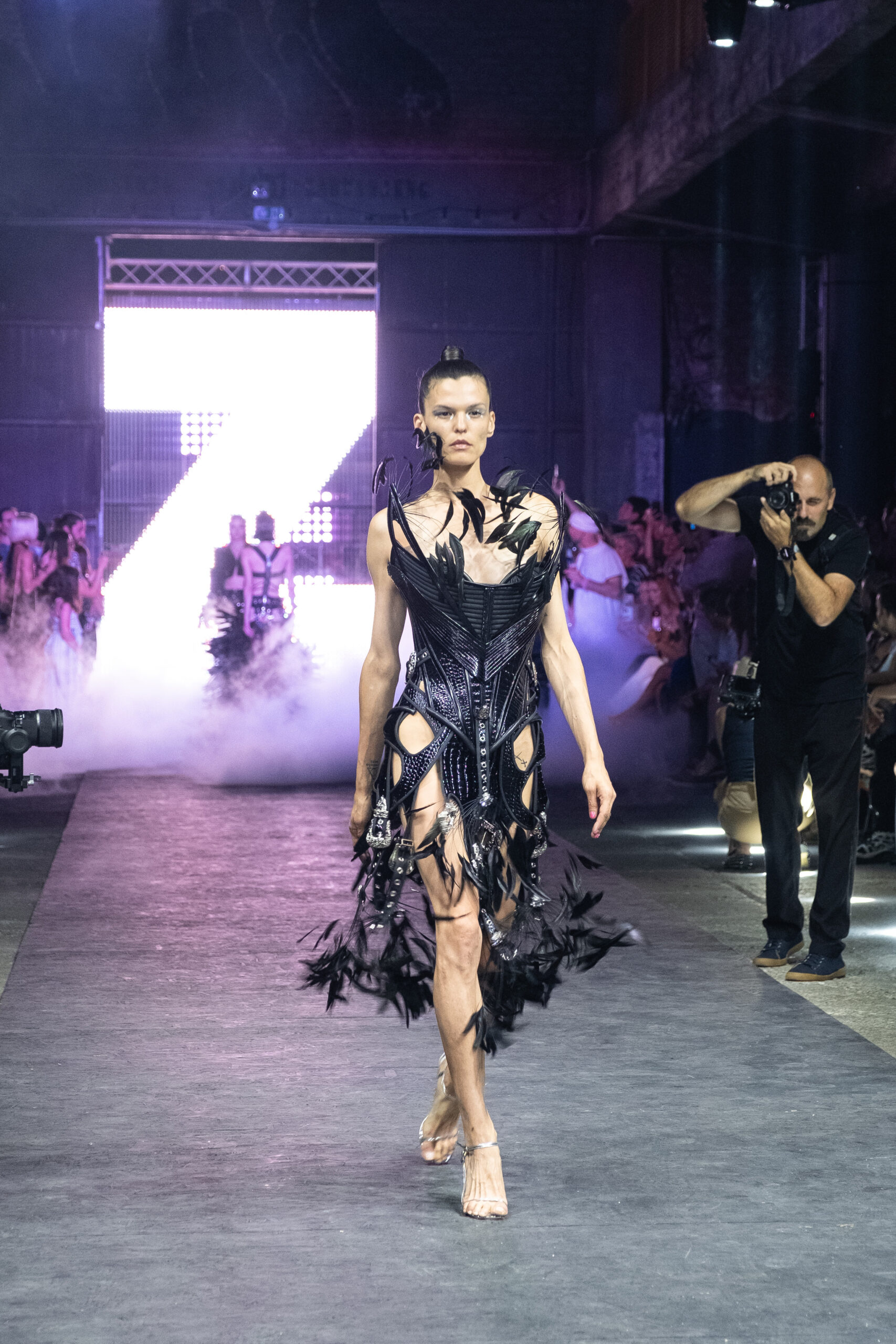 Kožni crop-topovi u formi polukorzeta kombinirani sa suknjom od perja, pomalo “svemirski” kostimi nepravilnih silueta uz čizme i neobičan, ali tako “zigmanovski” komplet sa crnim krilima na leđima, samo su neki od primjera kreativnosti koji proizlaze iz uma kostrenskog dizajnera.