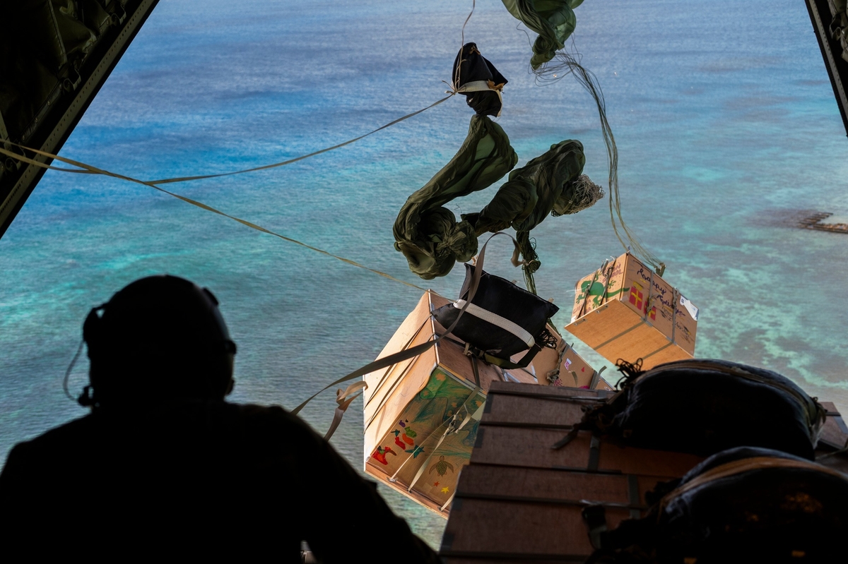 Tada su, kao vježba gađanja padobraniskih tereta, nad nekoliko otoka Micronezije izbačeni sanduci u kojima se nalazila humanitarna pomoć za stanovnike ovih udaljenih, zaboravljenih otoka u središtu Tihog oceana.