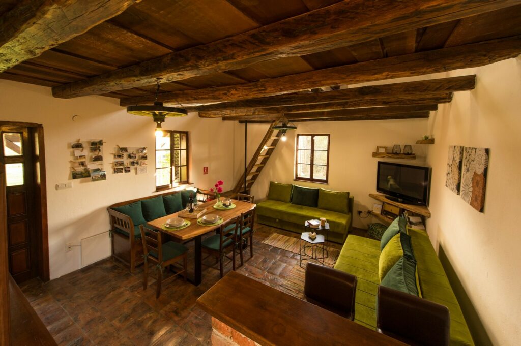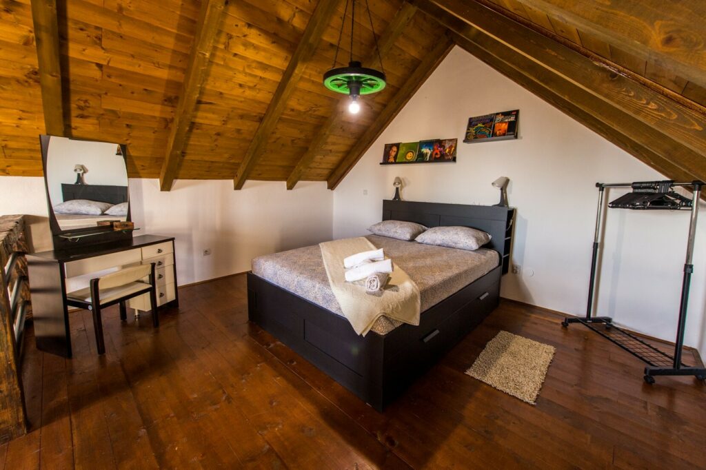 Atar je iznutra istinski dio romantičnog raja. Iskorištena je cjelokupna visina objekta i to tako da do kata vodi drveno stubište kojeg slijedi svojevrsni most do istinski velikog kreveta. Ispod su dnevni boravak, koji može udovoljiti 2+2 funkciji, kupaonica, na čijim je vratima izrezano i staklom ispunjeno srce, a domaćini brinu da goste dočeka sve – od začina do kave.