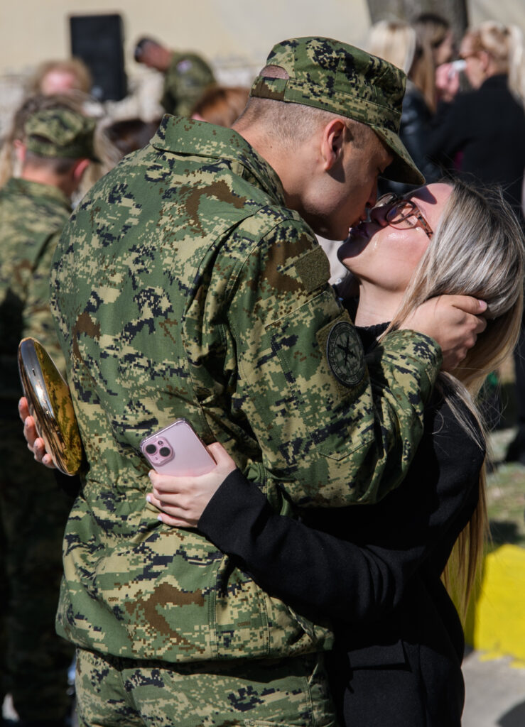 Nakon kraćih govora izaslanika uslijedilo je druženje ročnika s njima najdražima. Pali su i poljupci njihovih odabranica nakon predugih dvanaest dana razdvojenosti. Redom su se grlili i ljubili, a potom i fotografirali s tim mladićima odjevenim u mnogima i prevelike odore, ošišane na vojnički kratke frizure.
