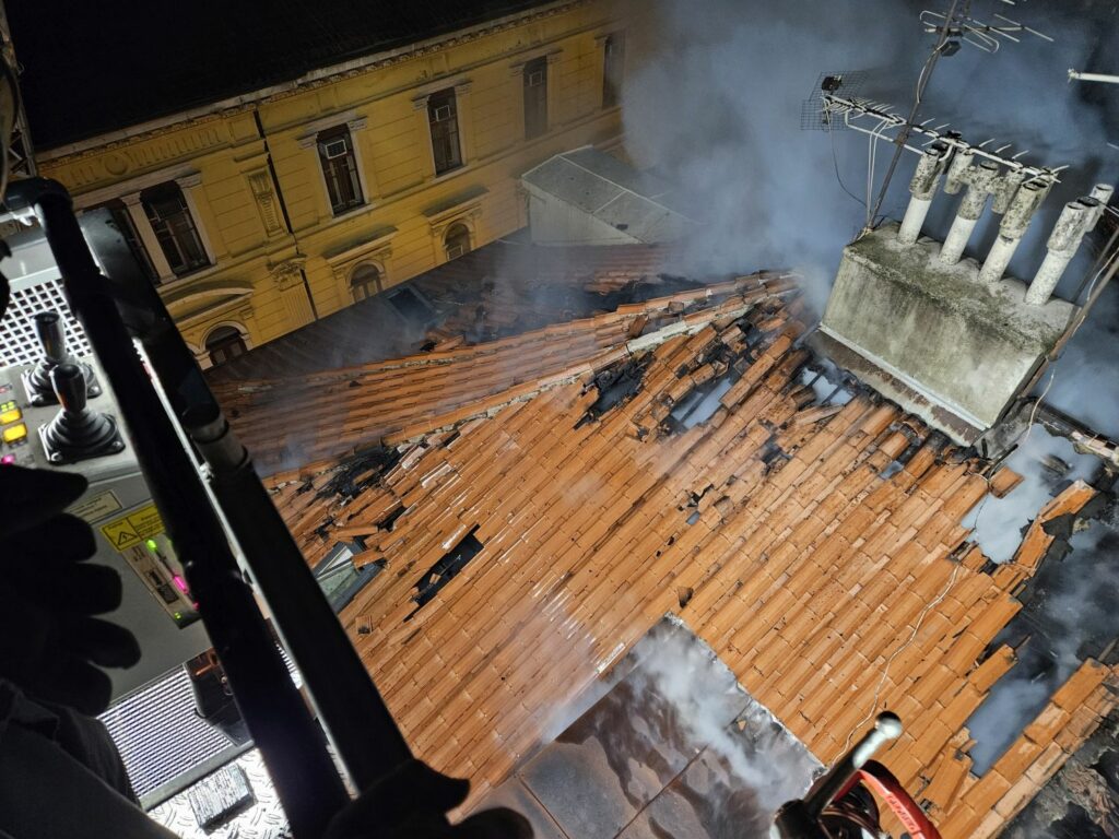 FOTO Požar u centru Rijeke. Planulo potkrovlje zgrade u Zanonovoj, vatra zahvatila više stanova