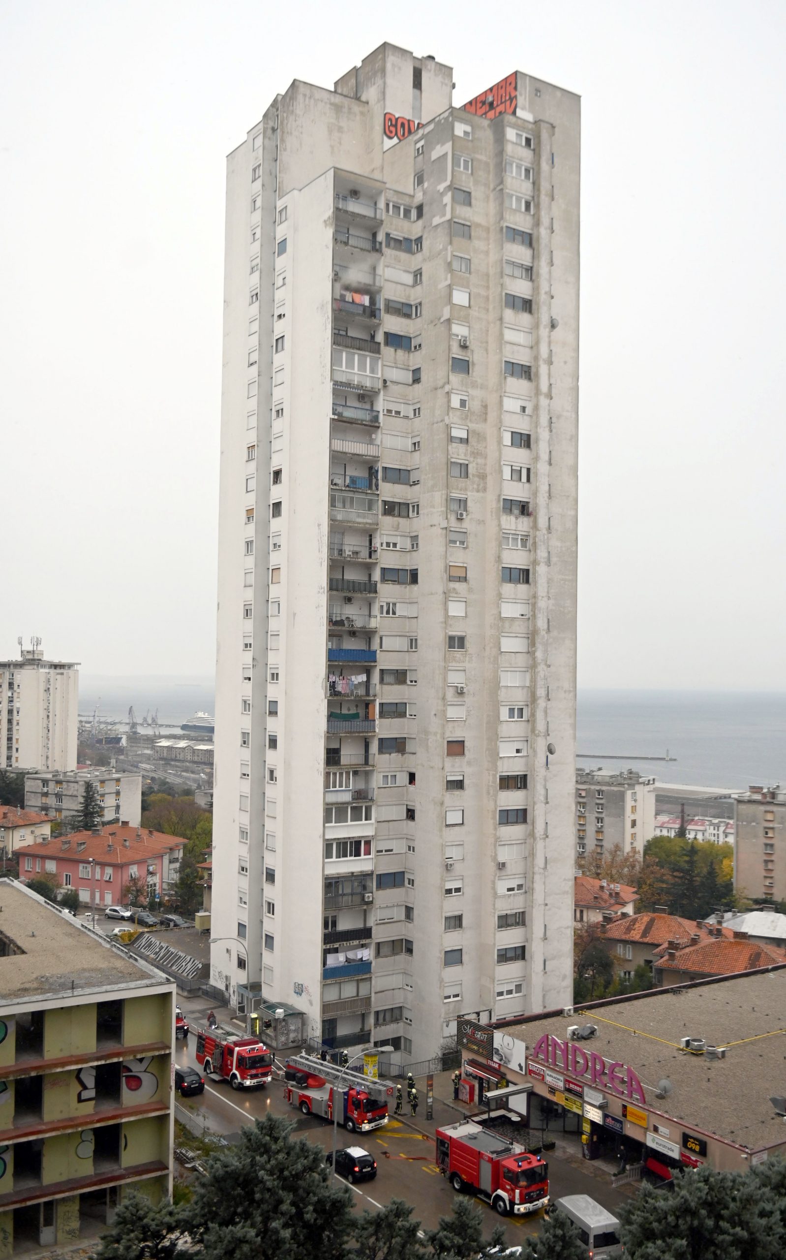 Zahvaljujući pravovremenoj dojavi i brzoj intervenciji riječkih vatrogasaca, na vrijeme je spriječeno širenje požara koji je izbio na 21. katu nebodera na adresi Čandekova 23A.
