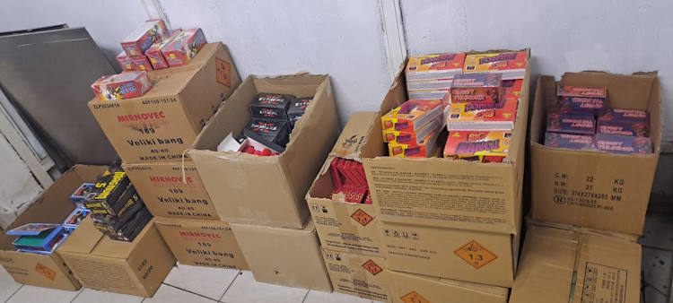 Temeljem naredbe Općinskog prekršajnog suda u Zagrebu pretražene su obiteljska kuća i druge prostorije 33-godišnjaka te je pronađeno i oduzeto ukupno 23.327 komada pirotehničkih sredstava kategorije F1, F2, F3 i F4 i to: 820 komada pirotehničkih sredstava kategorije F1; 20.804 komada pirotehničkih sredstava kategorije F2; 244 komada pirotehničkih sredstava kategorije F3 te 1459 komada pirotehničkih sredstava kategorije F4.