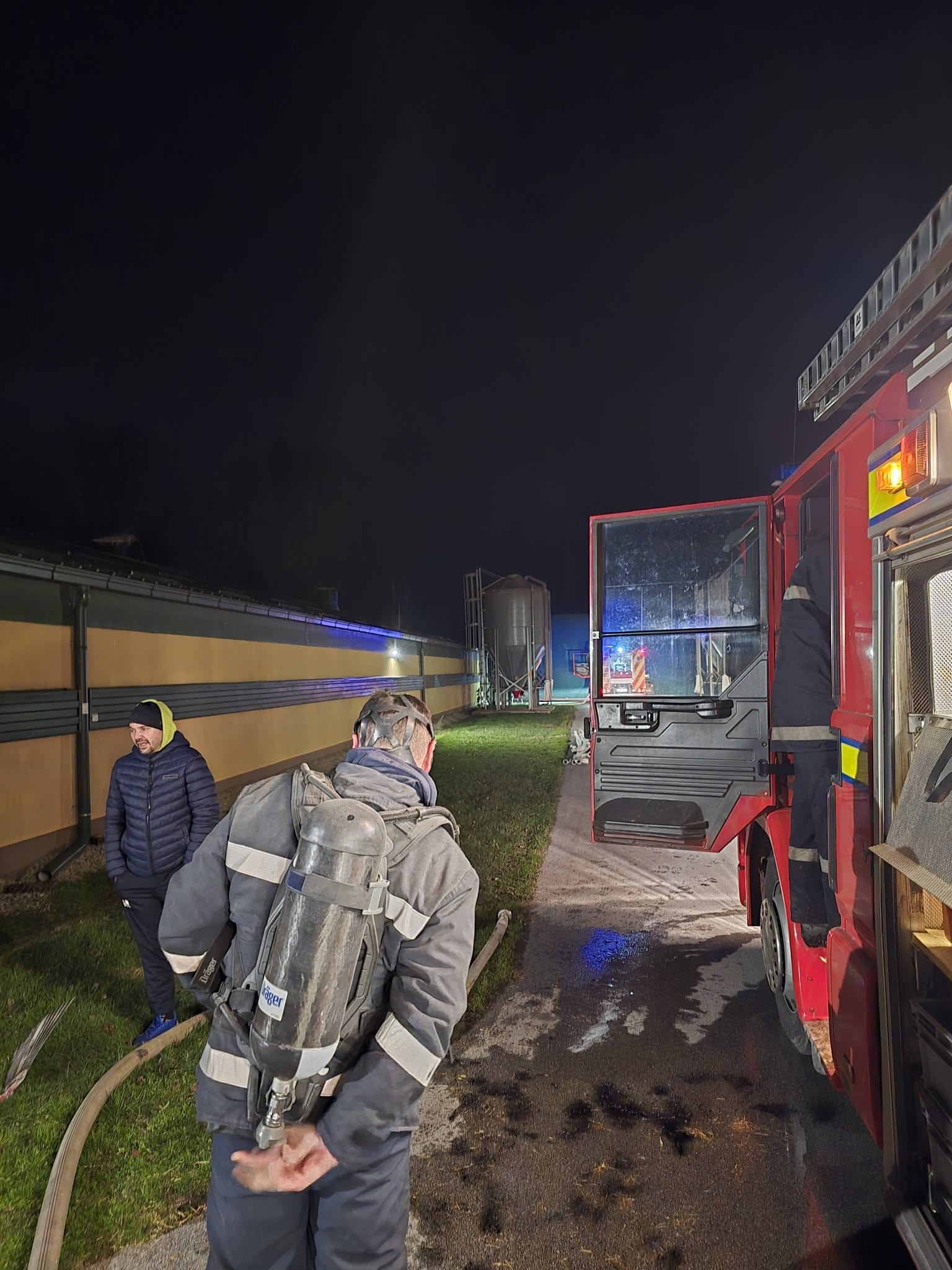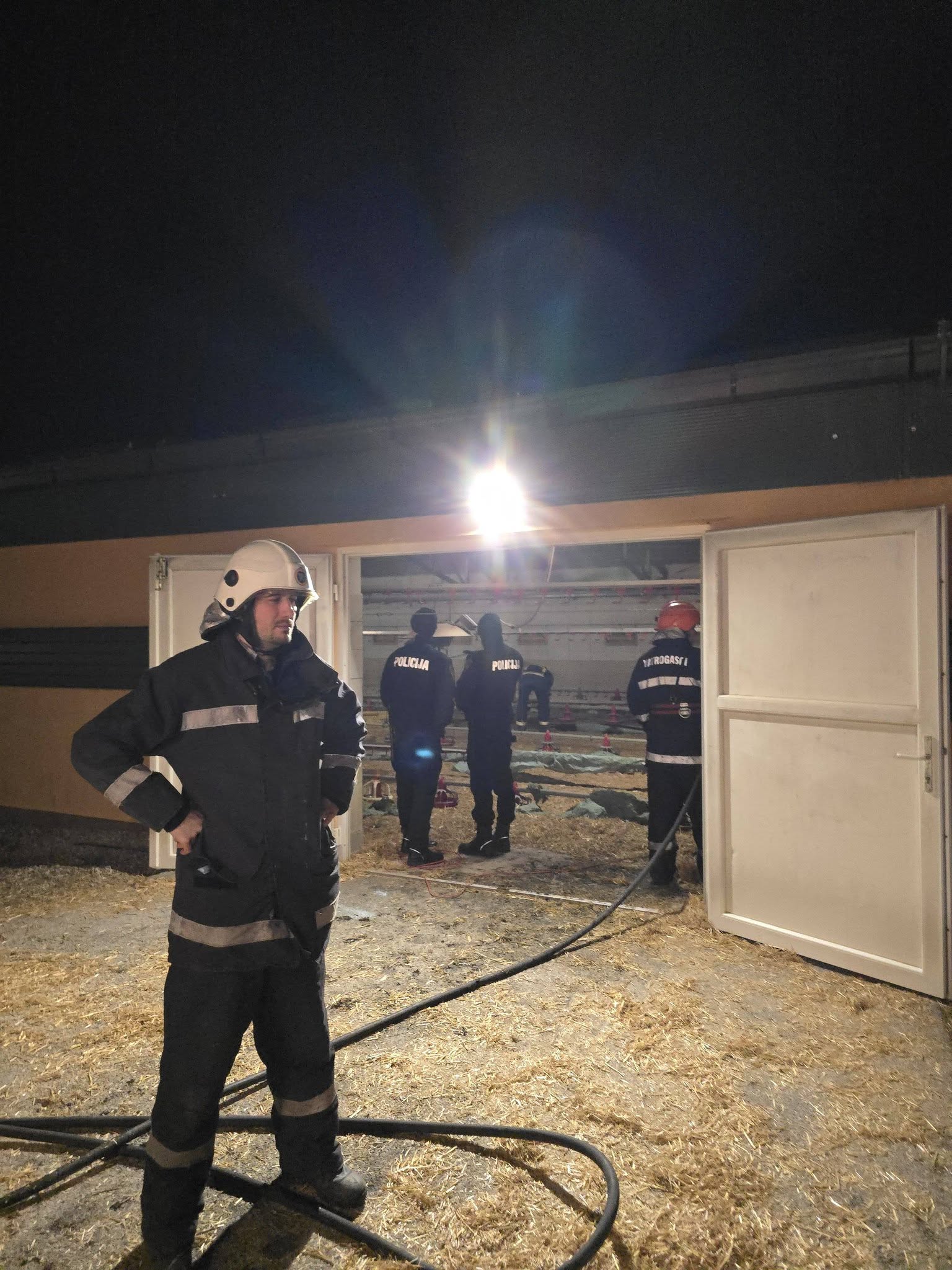 Po dolasku na mjesto događaja, uviđamo da se radi o dvije hale (peradarnika), od kojih iz jedne izlazi gusti dim. Naši vatrogasci formiraju dvije unutarnje navalne grupe s dišnim aparatima, koje ulaze u objekt pun dima te započinju gašenje i zaštitu druge polovice peradarnika na koju se požar mogao proširiti.