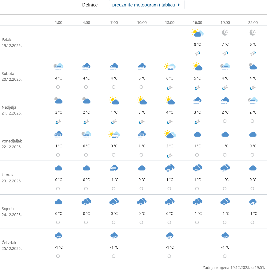 Pogledajte statistiku bijelih Božića u posljednje 64 godine i aktualnu prognozu 👇https://t.co/IqIYTguyQk pic.twitter.com/Y3YkZpyLyN— DHMZ (@DHMZ_HR) December 19, 2025