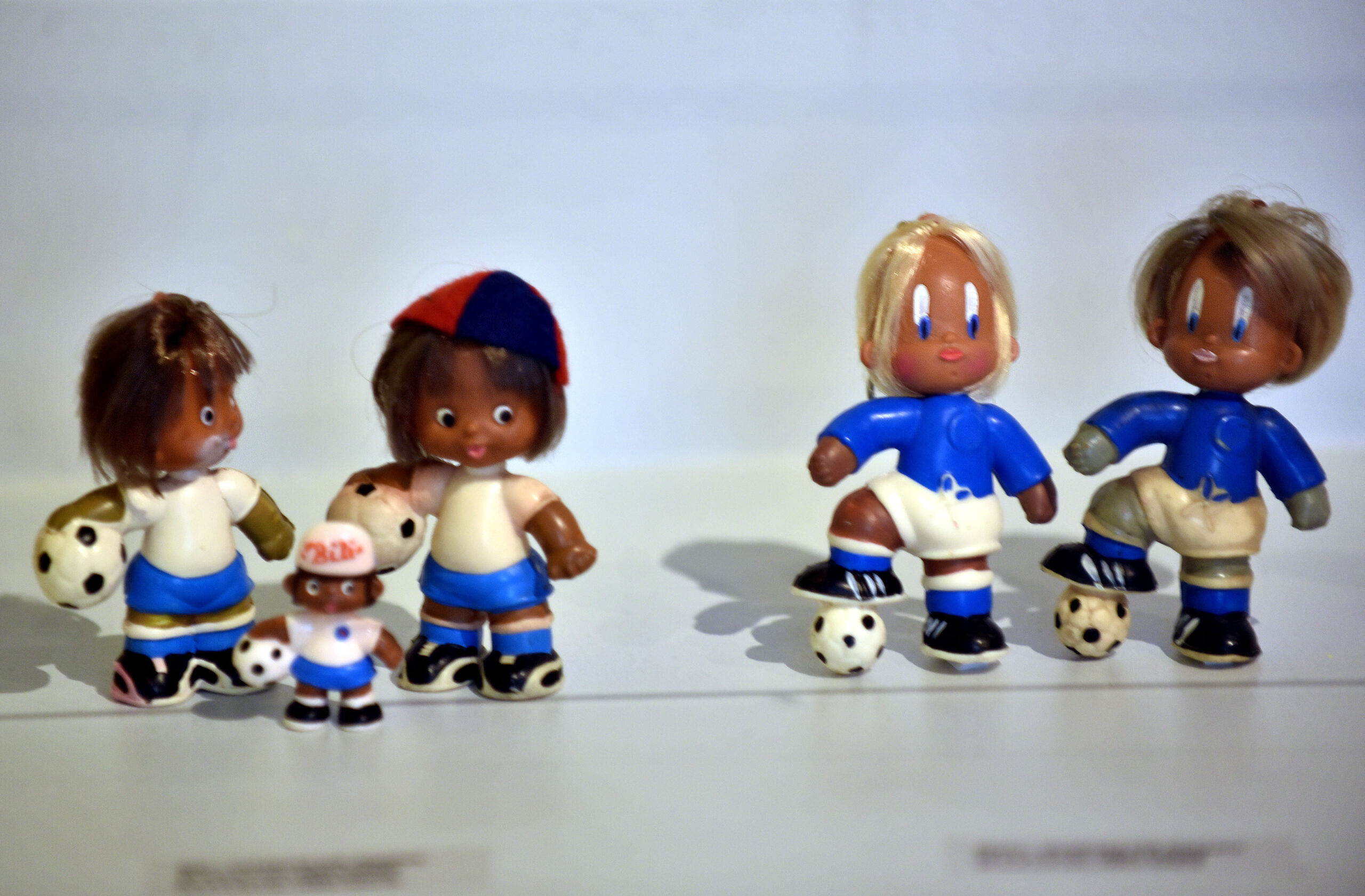 Pokrenula je tako Jugoplastika proizvodnju sportskih maskota, Žutko je bio prvi, da bi zatim bio Hajdukov Bili. No, ono što veseli na policama izložbe jest činjenice da tu uz maskotu Hajdukovog nogometaša stoji i maskota Dinamova momka. Jedan u bijelom, drugi u modrom dresu, a oba napravljena u Jugoplastici!