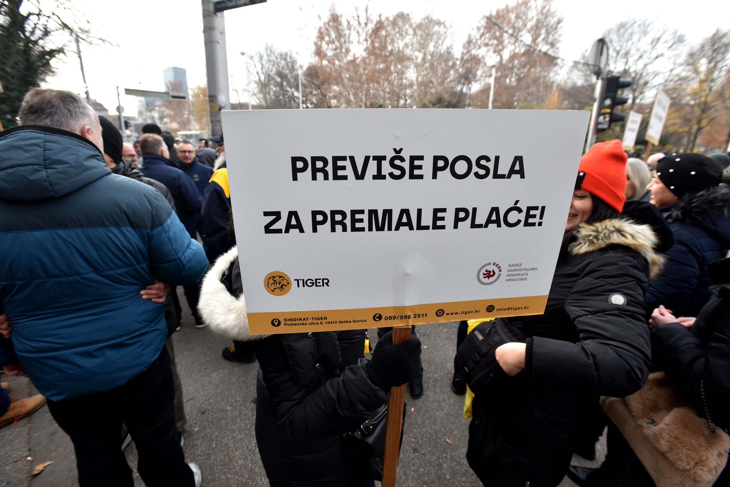 Prosvjed “Zajedno za veće plaće”, kojeg je u nedjelju organizirao Tiger, jedan od sindikata unutar Hrvatske pošte, okupio je 500-tinjak zaposlenika koji su, uz veće plaće, tražili bolje uvjete rada i isplatu 1200 eura svim radnicima u operativi, a ne samo dijelu, kako je planirano.