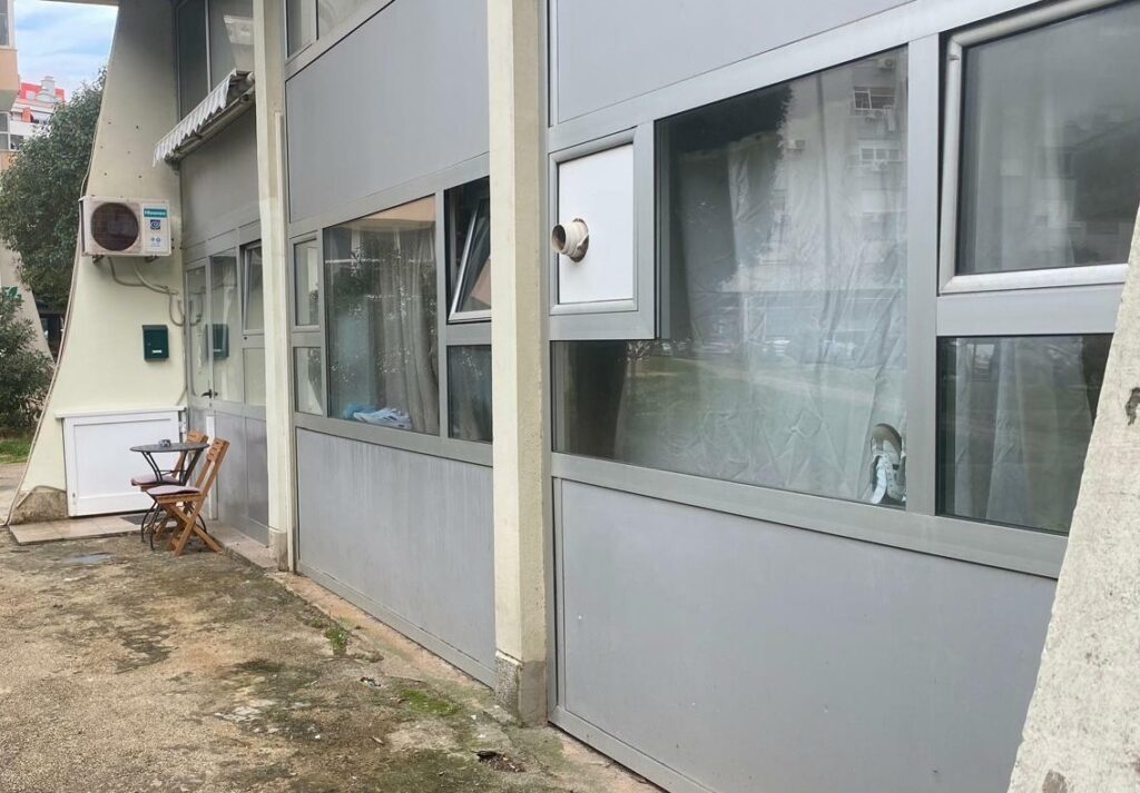 Na prozorima stoje uredno posložene cipele, a po zidovima je povješana odjeća. Ispred ulaza niz bicikala i električnih romobila svjedoči o svakodnevici ljudi koji su ovdje stigli raditi. I koji ovdje, barem zasad, i žive.