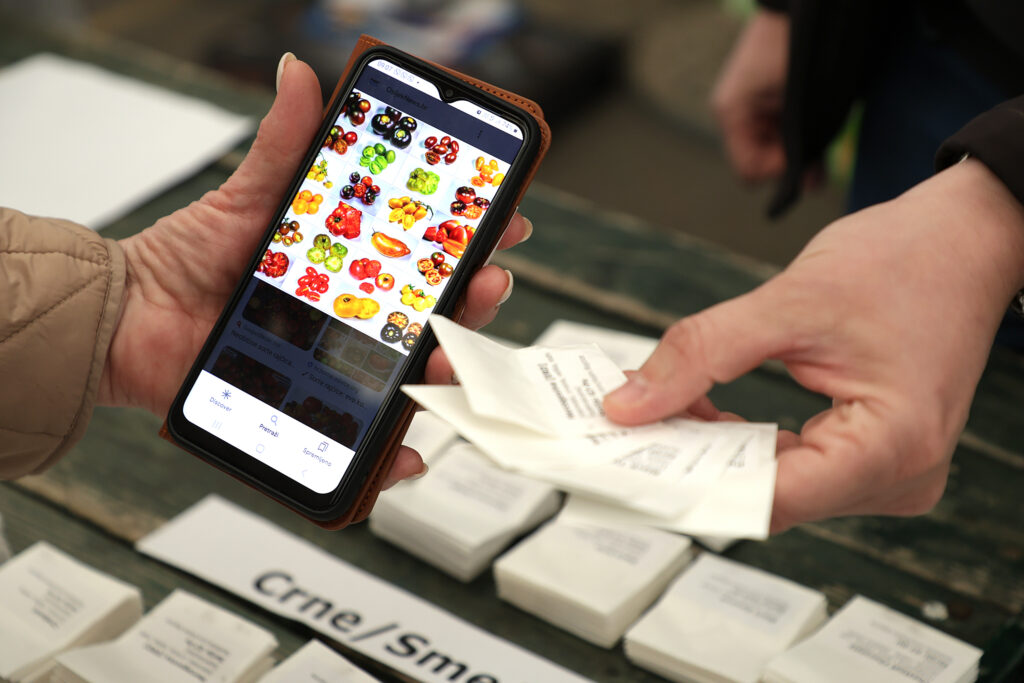S više od 3.000 vrećica sjemenki 40-ak sorti rajčica Dražen Karačić-Šoljić Cacan, kojega sugrađani još nazivaju i Šaptačem rajčicama, došao je na glavnu osječku tržnicu kako bi ljubiteljima starih sorti rajčica podijelio sjeme za ovogodišnju sezonu. To čini već desetak godina, tradicionalno, uvijek nekako u ovo vrijeme, početkom ožujka, kada je i najprihvatljiviji termin upravo za sjetvu sjemenja rajčice.