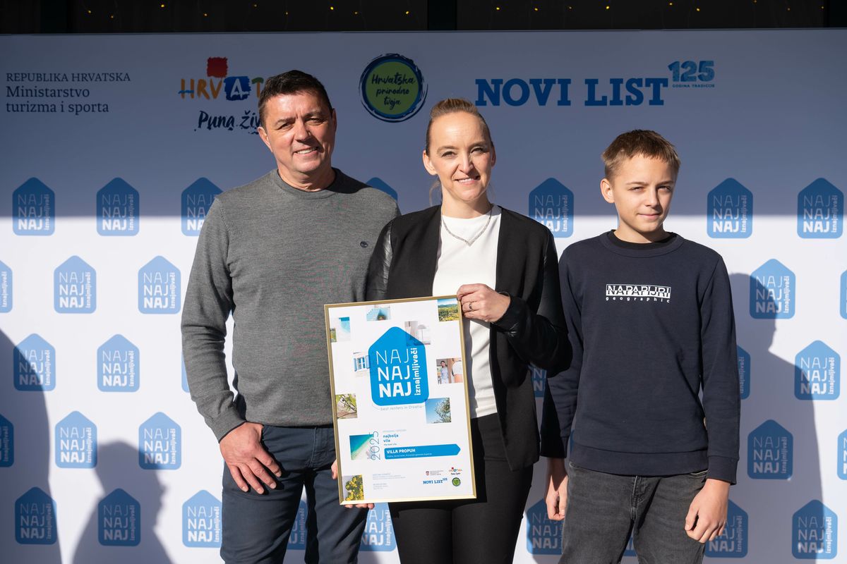 U Vili Propuh u Fužinama svečano su dodijeljene nagrade u okviru projekta Najiznajmljivači 2025., jedinstvene nacionalne akcije Ministarstva turizma i sporta, Hrvatske turističke zajednice i Novog lista te medijskih partnera Glasa Istre, Zadarskog lista i Glasa Slavonije, kojom se već godinama promiče izvrsnost, održivost i autentično domaćinstvo u privatnom smještaju.