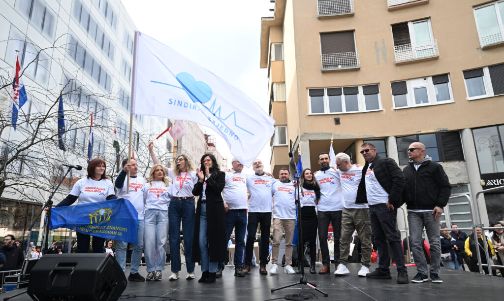 Prosvjed pod nazivom Sindikalno proljeće” organiziralo je na Europskom trgu u Zagrebu šest sindikata javnih službi svih djelatnosti, osim socijalne skrbi, koji od Vlade traže socijalni dijalog i početak pregovora o granskim kolektivnim ugovorima.