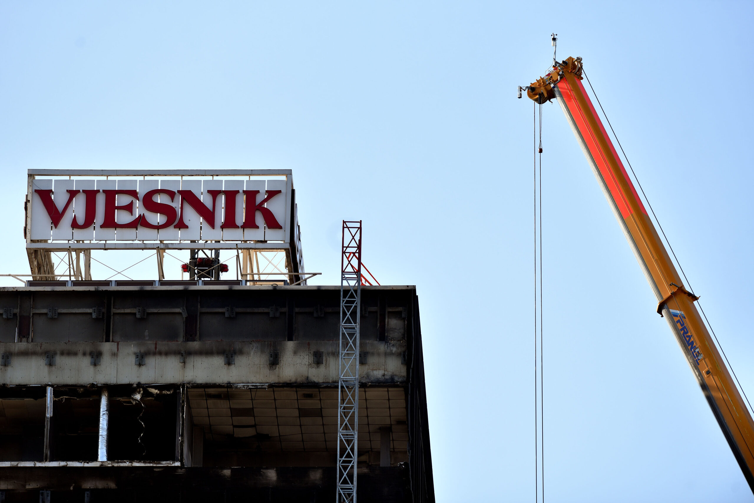 Premda se očekivalo da će danas s nebodera kompleksa Vjesnik biti skinuta reklama i antena s krova to se nije dogodilo.