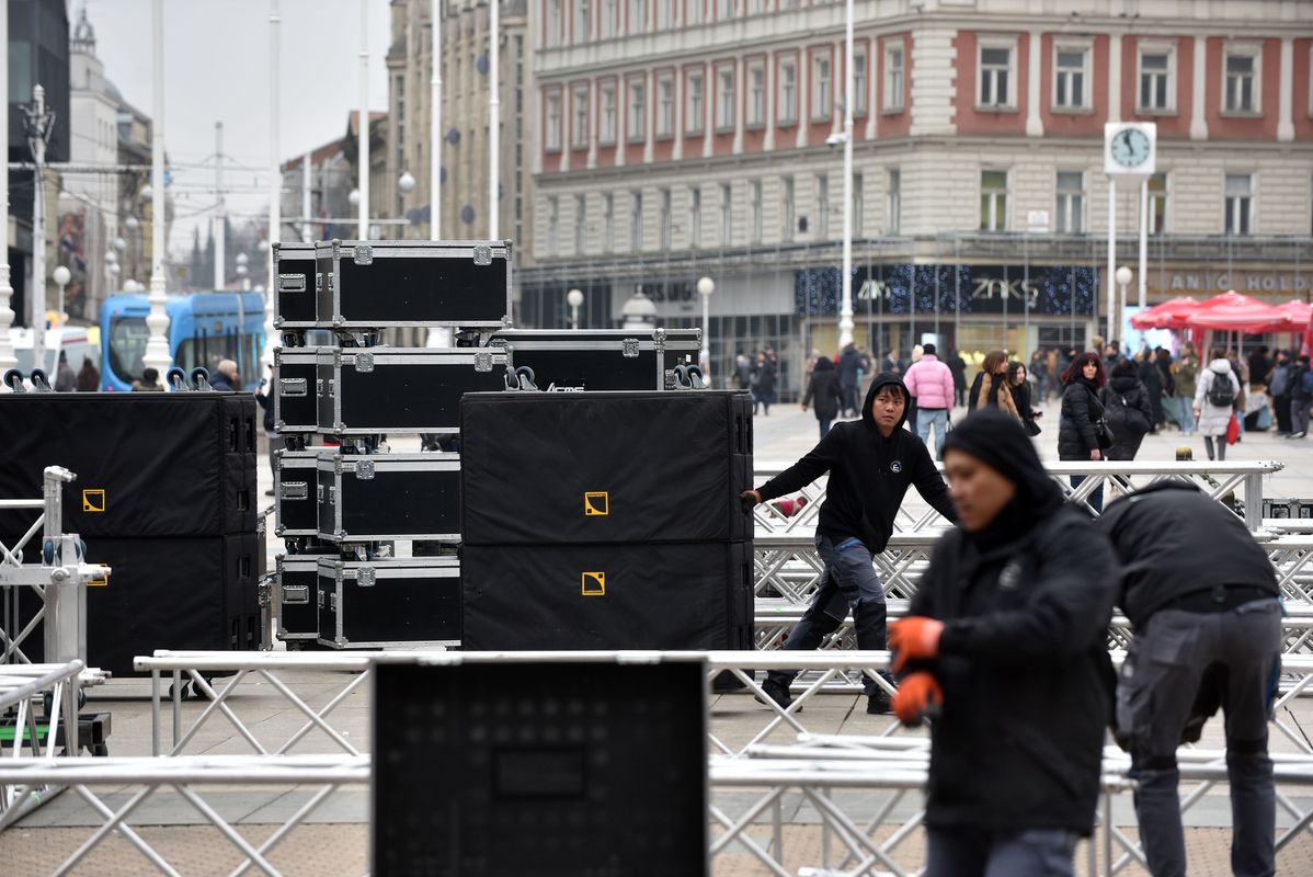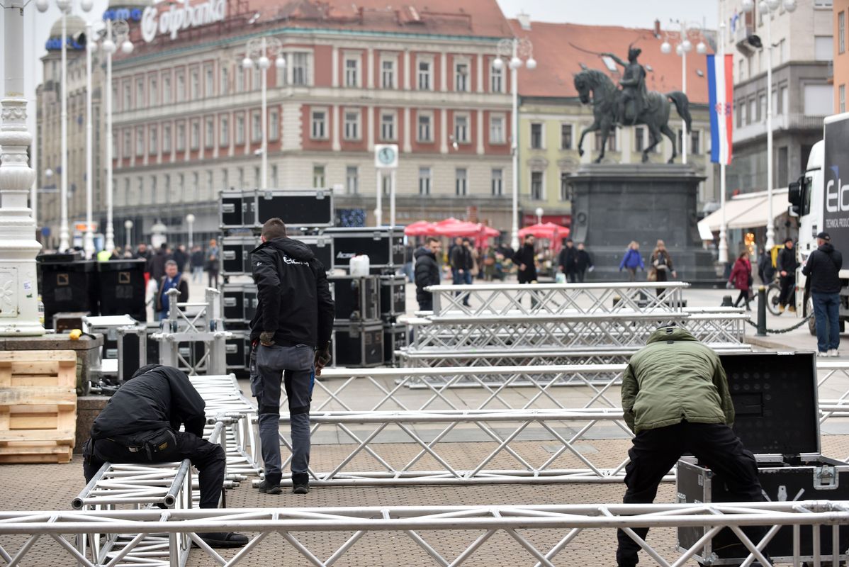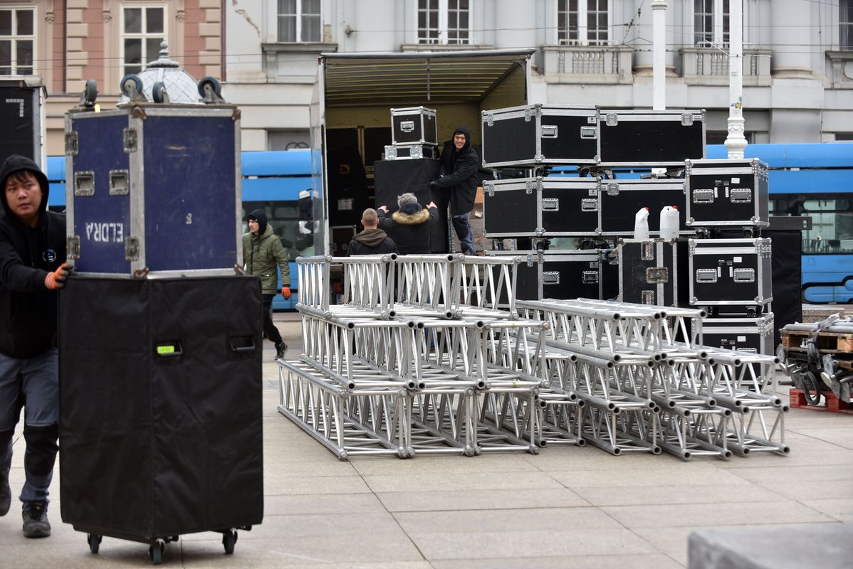 Radnici tvrtke Eldra koja je jučer postavljala pa onda skinula binu, sada ponovo postavljaju binu na glavnom zagrebačkom trgu.