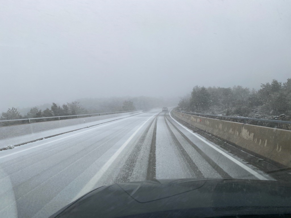 Kolnici su mokri ili vlažni i skliski u većem dijelu zemlje. U Gorskom kotaru, Lici, Slavoniji, središnjoj i sjevero-zapadnoj Hrvatskoj pada snijeg (povremeno i kiša). Snijeg nošen jakim vjetrom povremeno pada i u Hrvatskom primorju. Mogući su odroni. Vozačima savjetujemo da prilagode brzinu i način vožnje uvjetima na cestama, održavaju sigurnosni razmak između vozila i na put ne kreću bez propisne zimske opreme. Česti su zastoji iza vozila zimske službe koja se kreću sporije.
