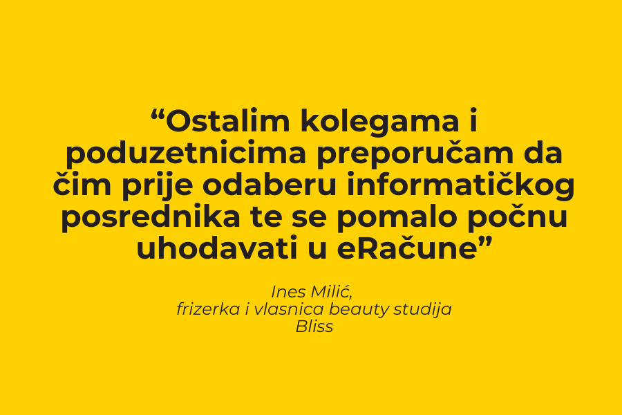 “Knjigovodstvo mi vodi sve što se tiče knjiženja, izdavanja i plaćanja računa te arhiviranja istih, i toliko sam zahvalna na tome”, pojašnjava Milić i dodaje da su eRačuni svima nešto novo.