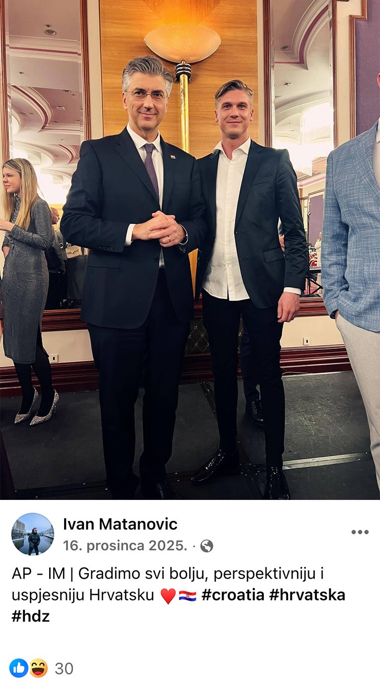 Na Matanovićevu profilu vidljivo je i nekoliko fotografija s premijerom Andrejem Plenkovićem uz citate “AP – IM Gradimo svi bolju, perspektivniju i uspješniju Hrvatsku” te “Okruženje koje inspirira”.