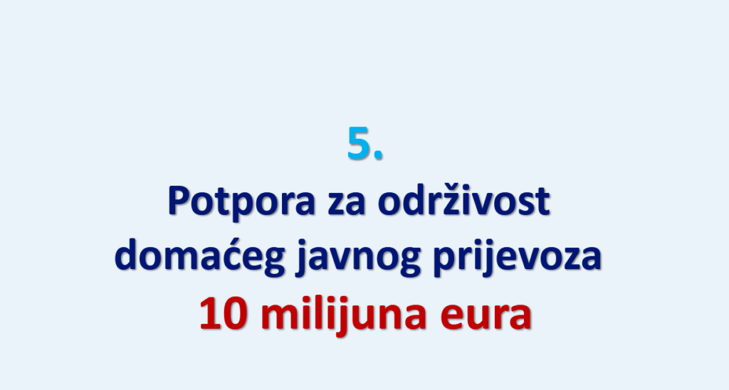 Potpore za javni prijevoz ukupno su vrijedne deset milijuna eura pri čemu se subvencionira 0,16 eura po litri dizela za prijevoznike. Ideja je zaštititi putnike od mogućeg rasta cijena karata i omogućiti održavanje linija koje su manje isplative, ali nužne za život lokalnih zajednica.